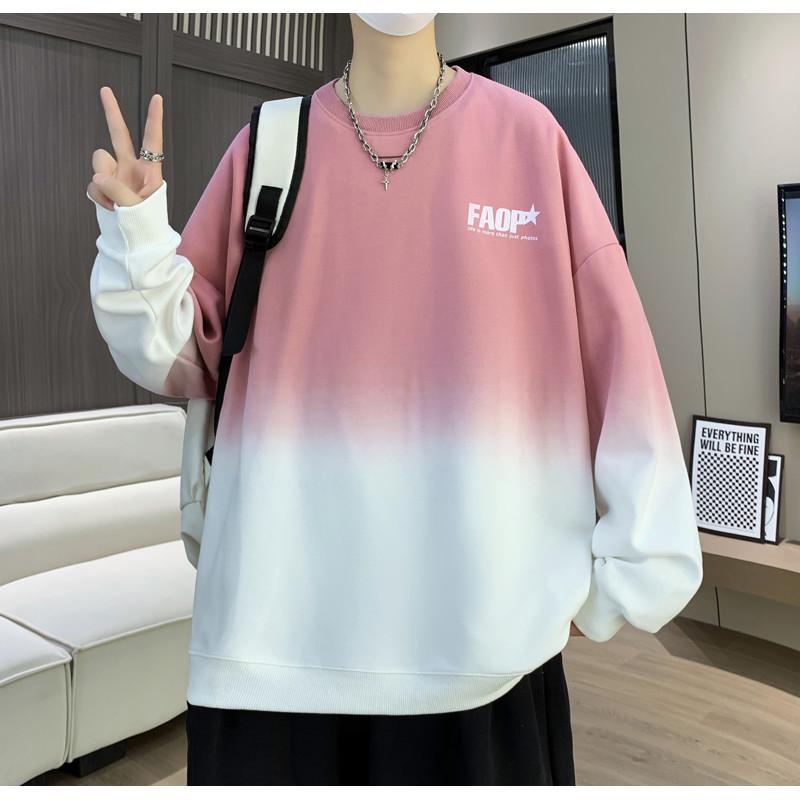 Мужской свободный топ с градиентной расцветкой и круглым вырезом для мужчин и подростков, модная и крутая футболка, модная спортивная куртка для учеников средней школы