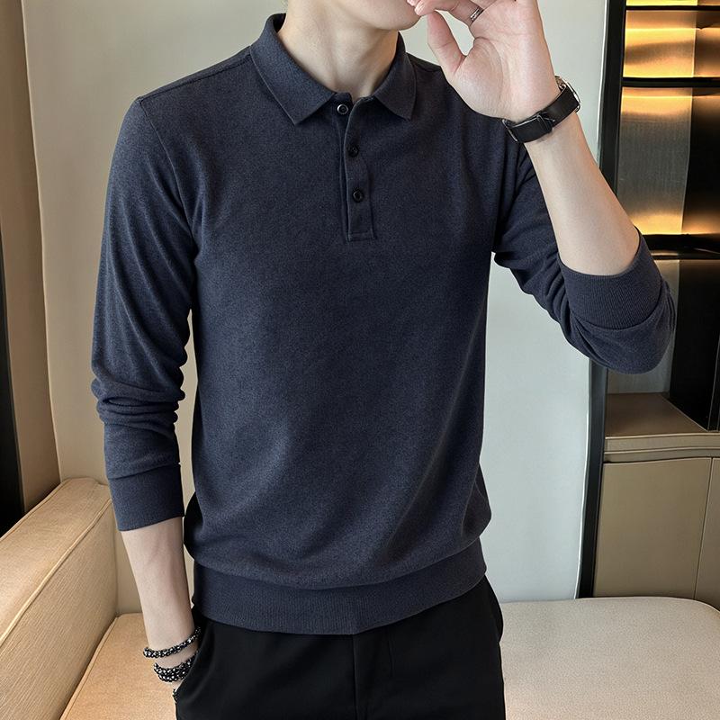 Новая мужская рубашка поло, свитер из имитации кашемира, деловой повседневный топ, высококачественная базовая рубашка, куртка для среднего и молодого возраста