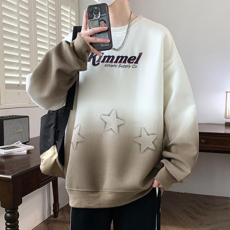 Осенние топы для мужчин, студентов средней школы, свободная футболка с круглым вырезом, градиентной расцветки, с длинным рукавом, куртка для больших детей, подростковая осенняя толстовка