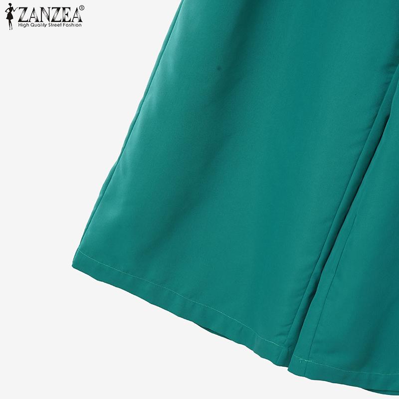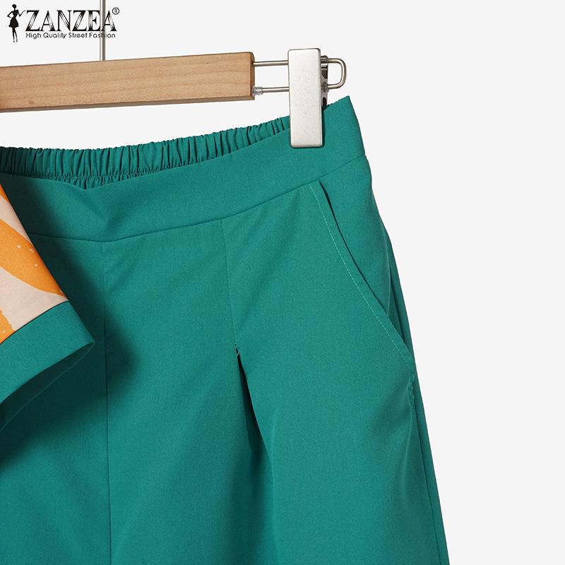 ZANZEA Женская блузка с коротким рукавом и принтом и брюки широкого кроя Летние костюмы-двойки