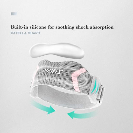 Защита коленной чашечки: Встроенная мягкая амортизирующая силиконовая подушечка повторяет форму надколенника, обеспечивая целенаправленную защиту и амортизацию коленного сустава во время движения.