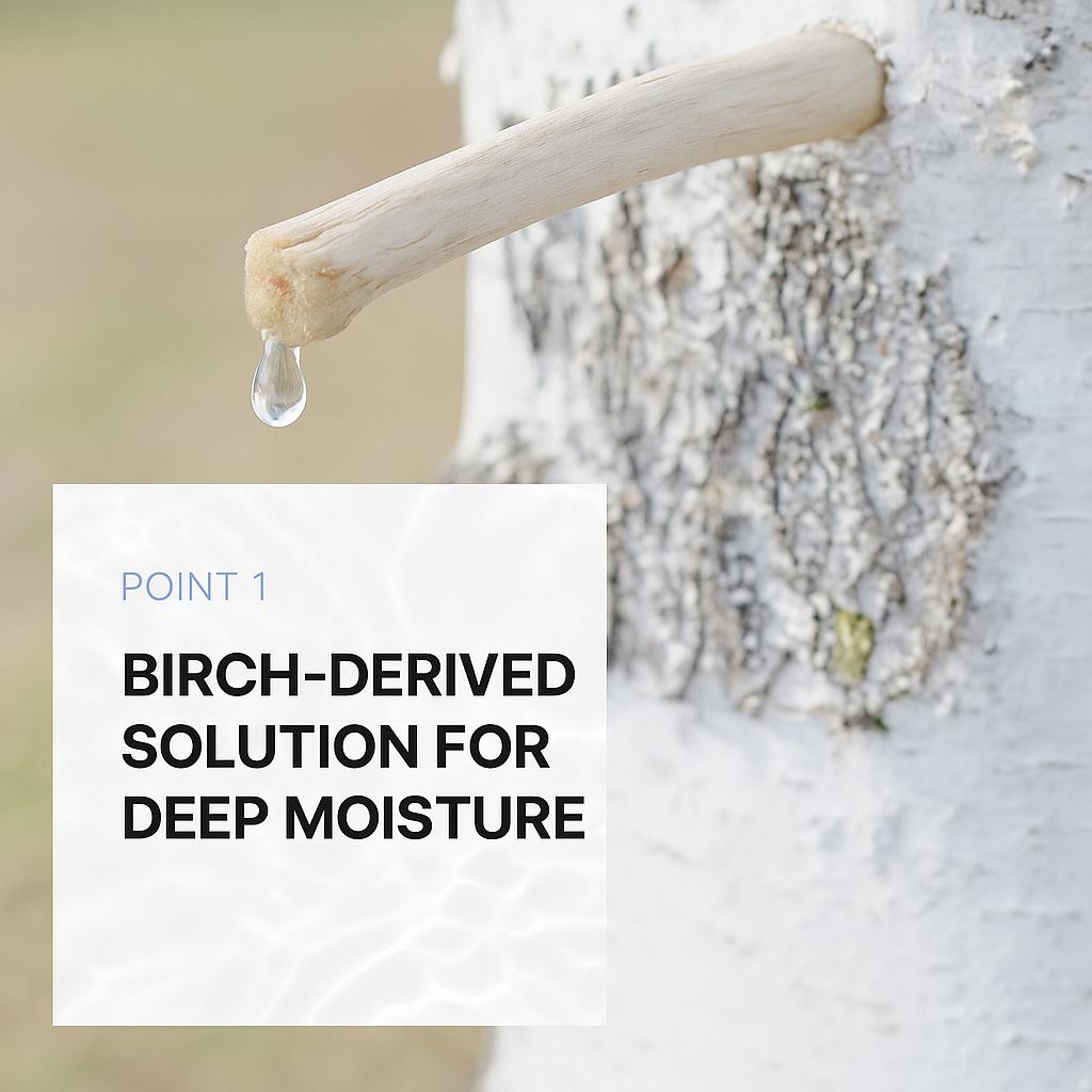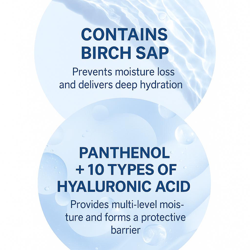 ✅ 70% Березовый сок: Обеспечивает интенсивное и глубокое увлажнение, имитируя естественное увлажнение кожи.