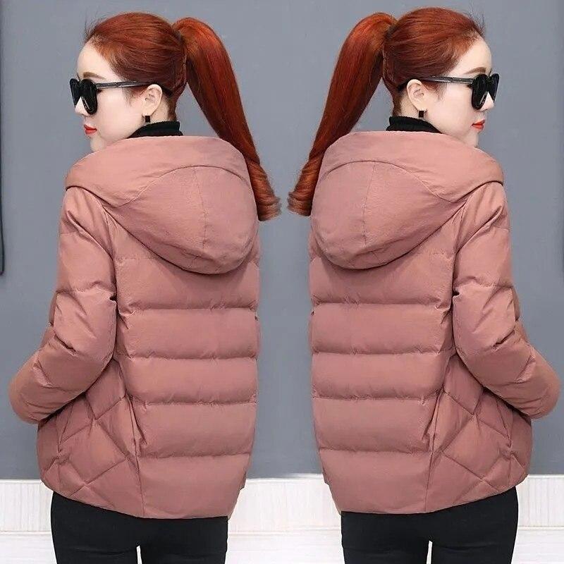 Свободное зимнее утолщенное короткое хлопковое пальто с капюшоном