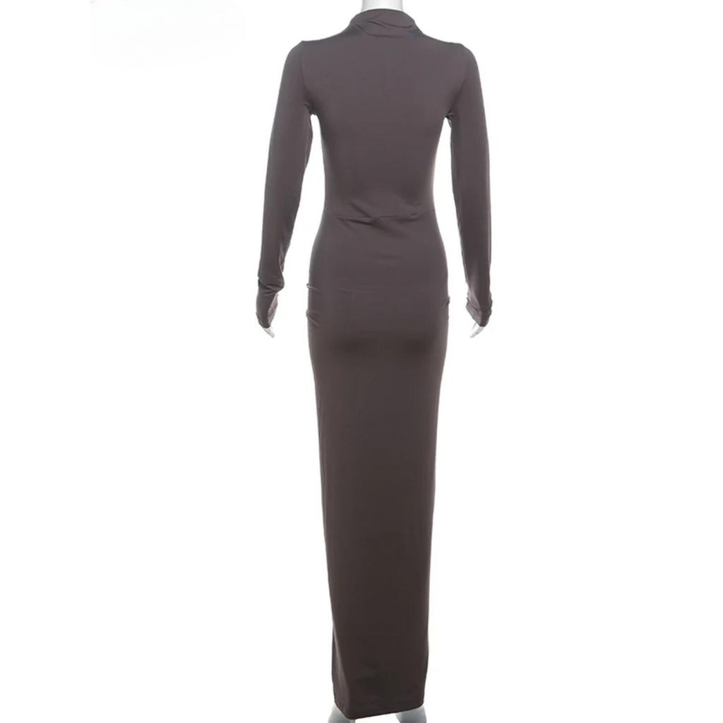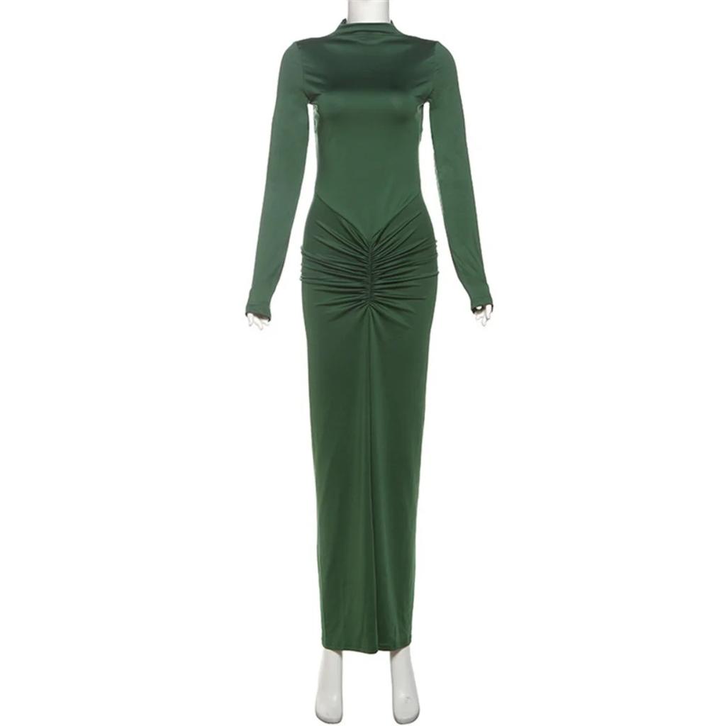LYRIA Женское классическое платье макси с драпировкой, осенняя новинка, однотонное, с длинным рукавом, высоким воротником, облегающее фигуру, Vestidos Mujer, лаконичное, трендовое платье