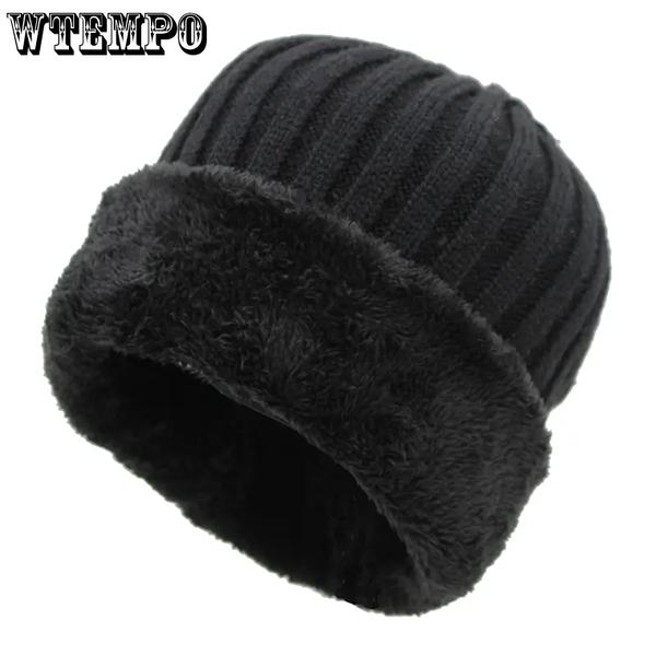 WTEMPO Однотонные теплые флисовые шапки для мужчин, зимние шерстяные шапки, мягкие эластичные холодостойкие ветрозащитные вязаные шапки для папы