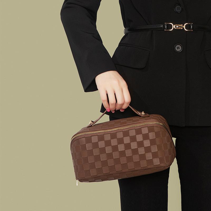 Сумка для макияжа ручной работы Простая Большая вместимость Портативная Клетчатая Водонепроницаемая Сумка для макияжа Командировка Хранение Умывание