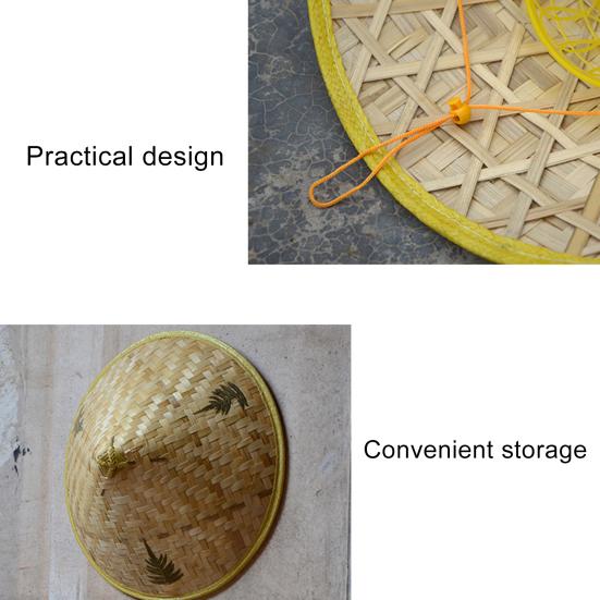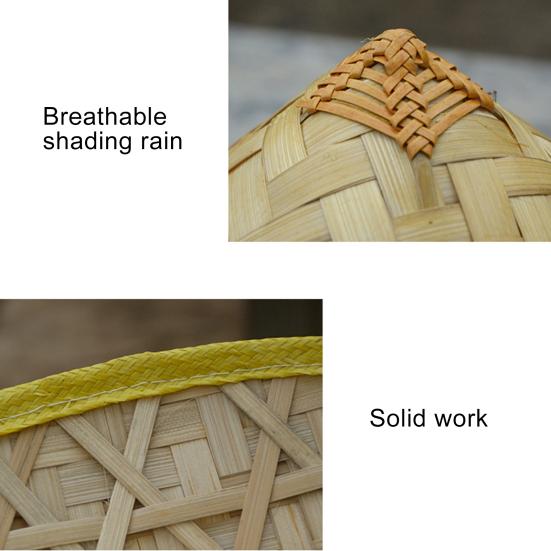 Экологически чистый бамбуковый материал обеспечивает долговечность и прочность, что делает его надежным выбором для различных видов деятельности.. Каждая шляпа имеет уникальный цвет и форму благодаря использованию натуральных материалов.. Эта коническая шляпа, вдохновленная древними азиатскими шляпами из фильмов и культурных традиций, служит практичным аксессуаром, обеспечивающим защиту от тени и дождя..