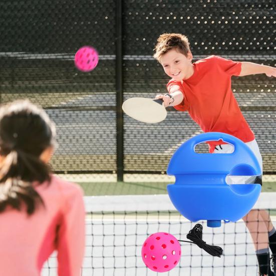 Наш легкий и портативный тренажер для пиклбола легко переносить и использовать.. Этот инструмент для тренировки одиночного отскока пиклбола можно подарить друзьям и членам семьи, которые любят играть в пиклбол.