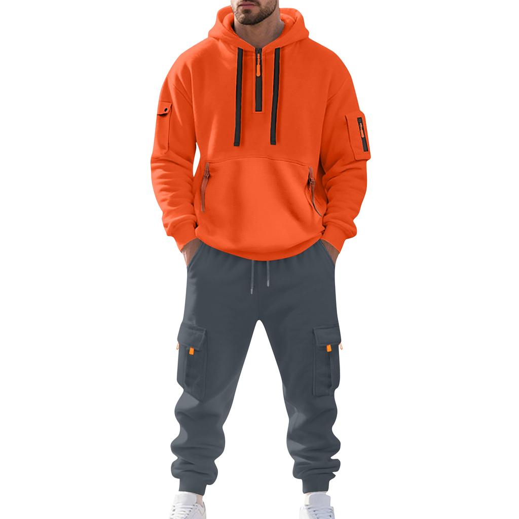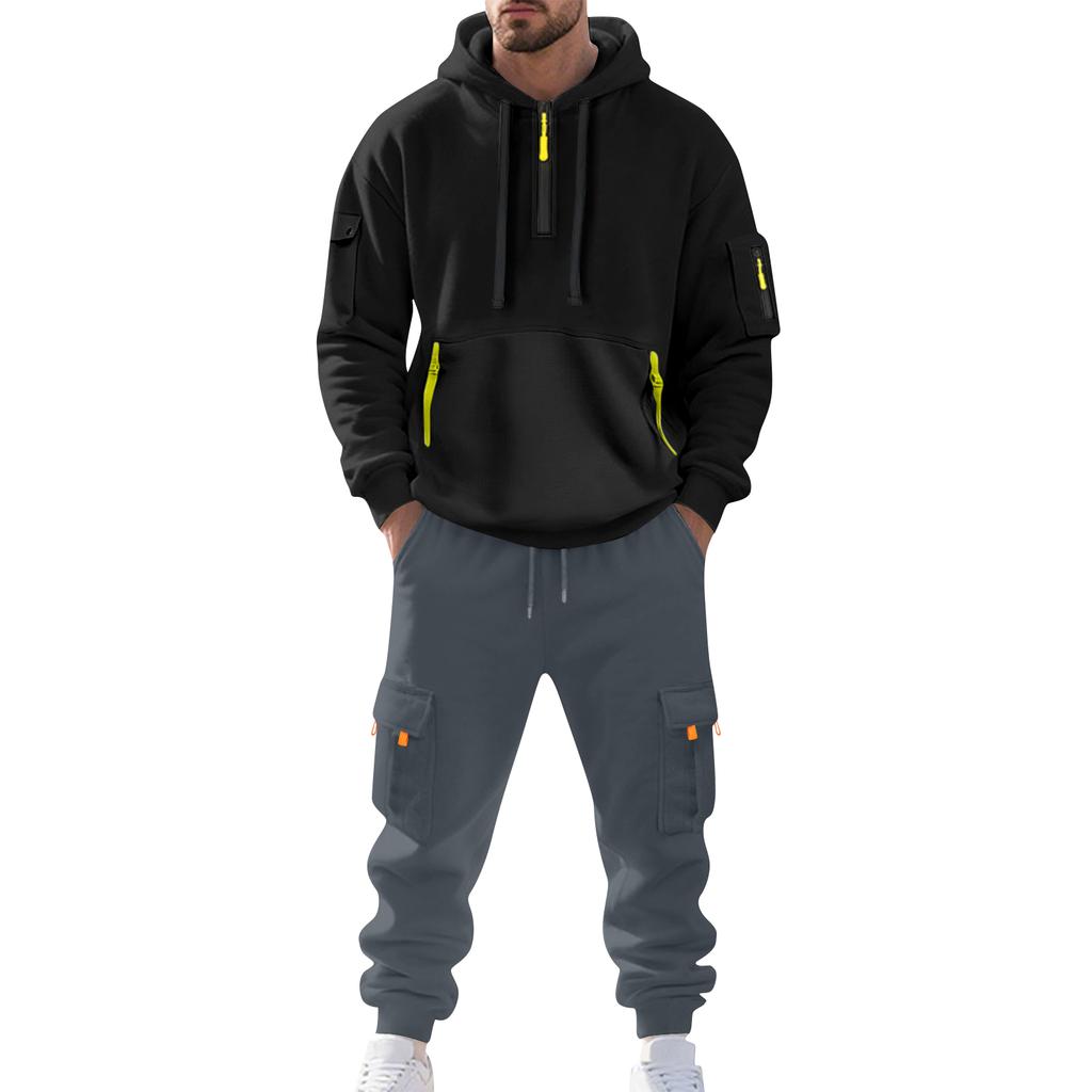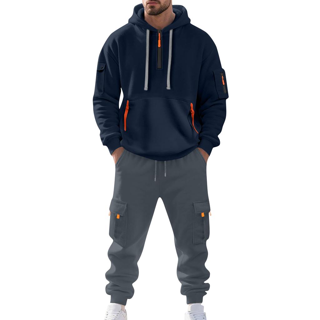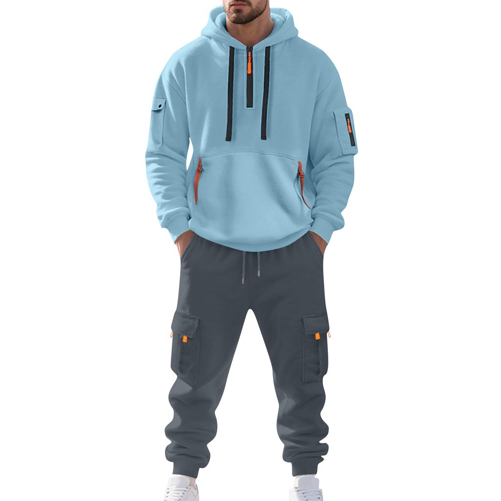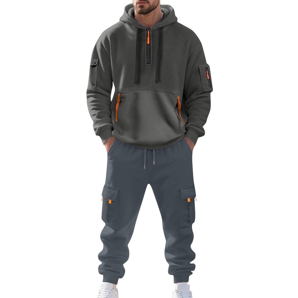 Мужской однотонный повседневный костюм, свободная спортивная толстовка с капюшоном и карманами, комбинезон с несколькими карманами