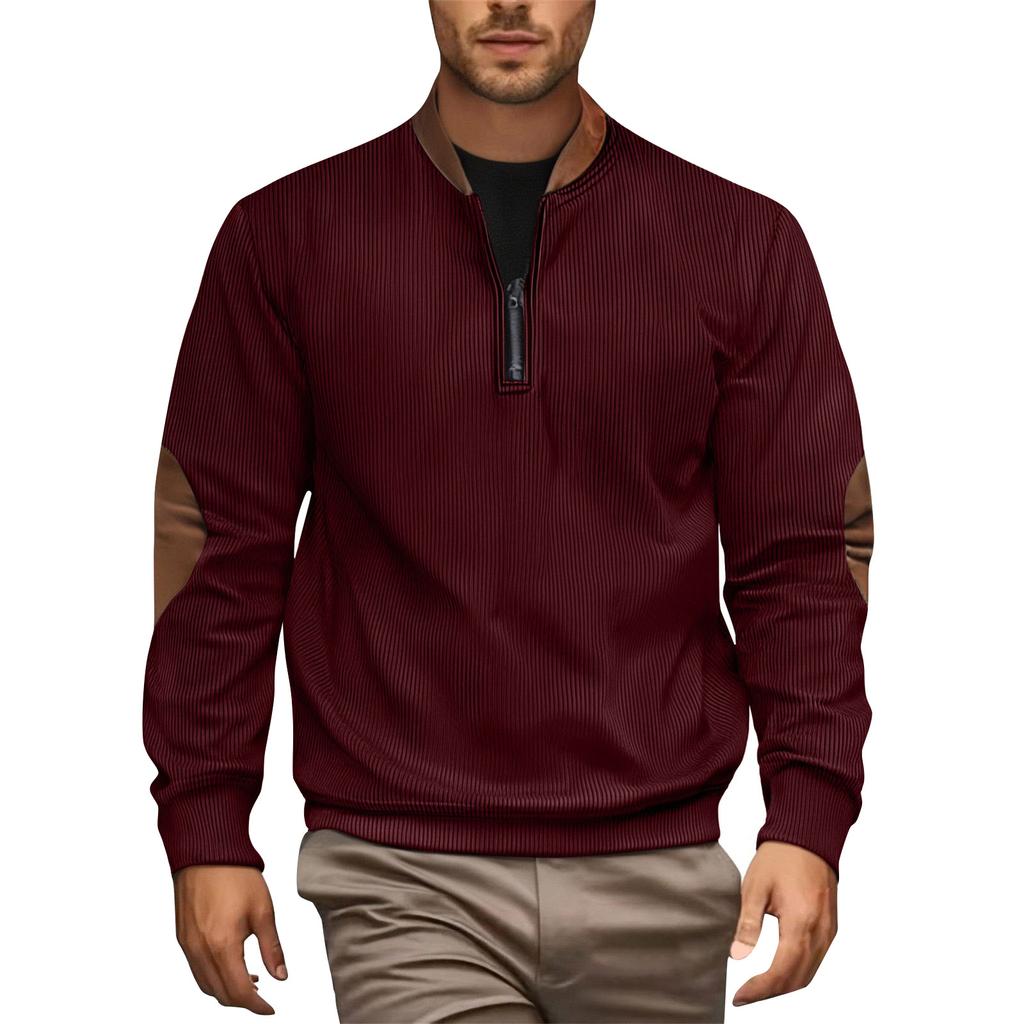 Мужской однотонный вельветовый свитшот на молнии до середины груди, мужской спортивный повседневный пуловер большого размера