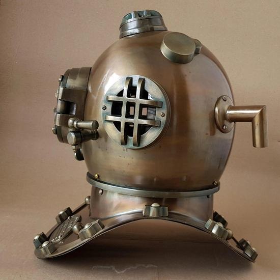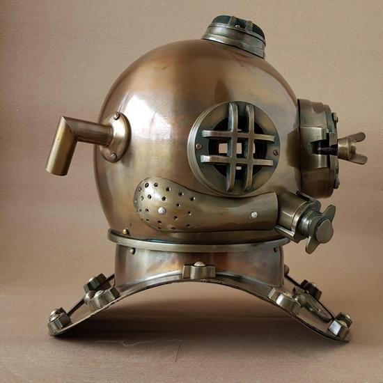 Богатая бронзовая отделка: Имеет глубокую, блестящую отделку под античную бронзу или латунь, передающую патину и характер водолазного снаряжения.. Идеально для морской тематики.