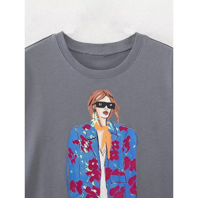 Kaslead New Arrival Women's Clothing Fashion Style Casual Loose Girl Print T-shirt 1131348 807