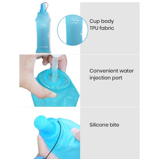 Благодаря большой емкости (500 мл) вы сможете избежать обезвоживания на протяжении всего путешествия.. Складная конструкция позволяет легко помещать его в большинство гидратационных жилетов или рюкзаков, экономя место и обеспечивая удобство в дороге.