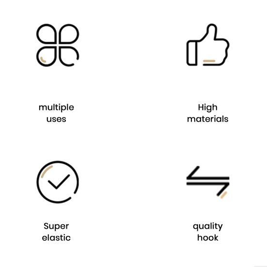 Обладая высокой прочностью на растяжение, устойчивостью к ультрафиолетовому излучению и атмосферным воздействиям, стойкостью к истиранию, универсальностью и долговечностью для надежного использования на открытом воздухе. По сравнению с другими аналогичными латексными шнурами с крючками, наши прочные шнуры с карабинами помогают обеспечить надежную фиксацию крючка в точке крепления и исключают вероятность случайного отсоединения.