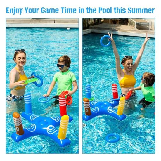 Веселая игра с бросанием надувных колец: Обеспечивает бесконечное развлечение для детей, взрослых и всей семьи во время отдыха в бассейне.