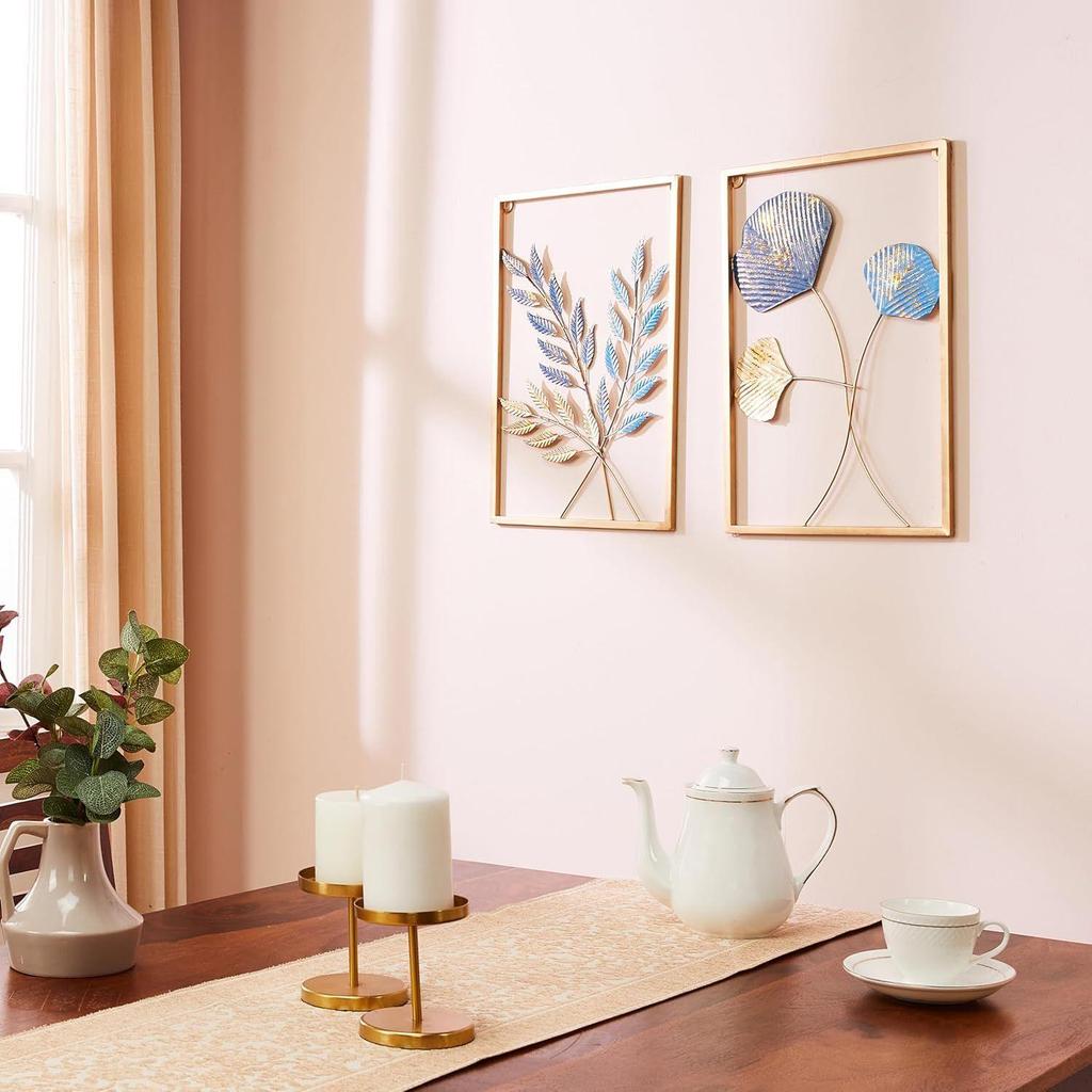 Металлический лист Настенный декор | Дизайн листа, вдохновленный природой | Простая установка (Набор из 2 штук | Золотой)