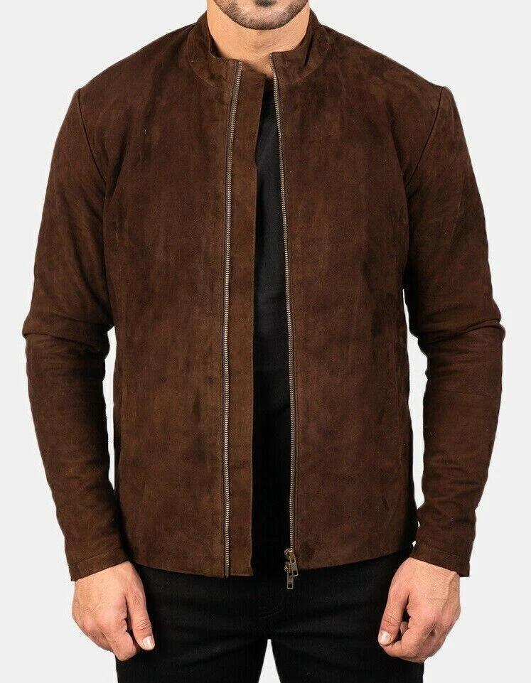 Мотоциклетная стильная замшевая куртка из натуральной овчины, коричневая, на молнии, ручной работы, мужская, байкерская — купить товар онлайн с бесплатной доставкой по всему миру!