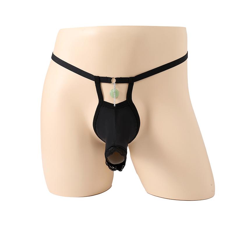 Мужские эластичные трусики с полым кружевом, предохранительной застежкой, сексуальное нижнее белье, мужское сексуальное нижнее белье
