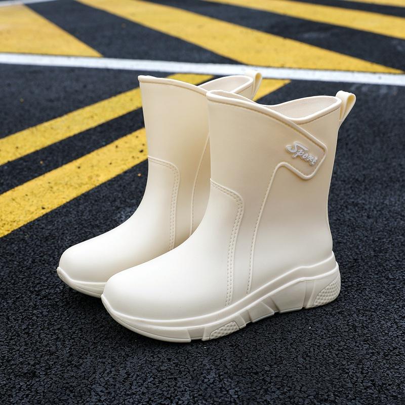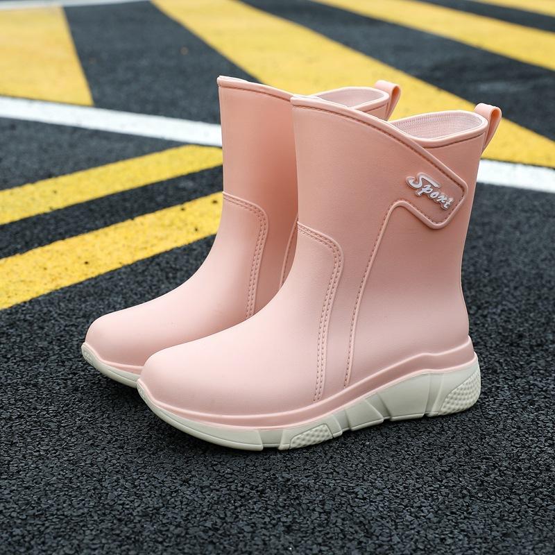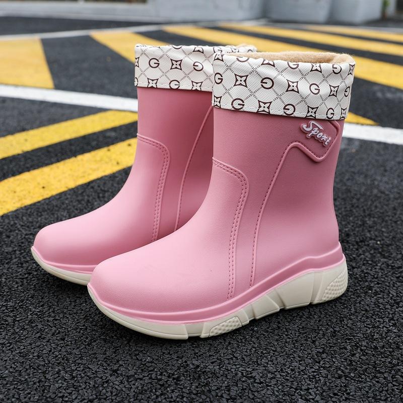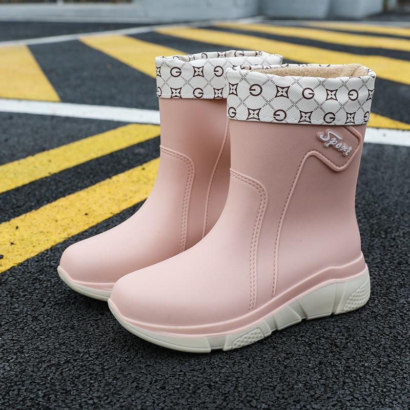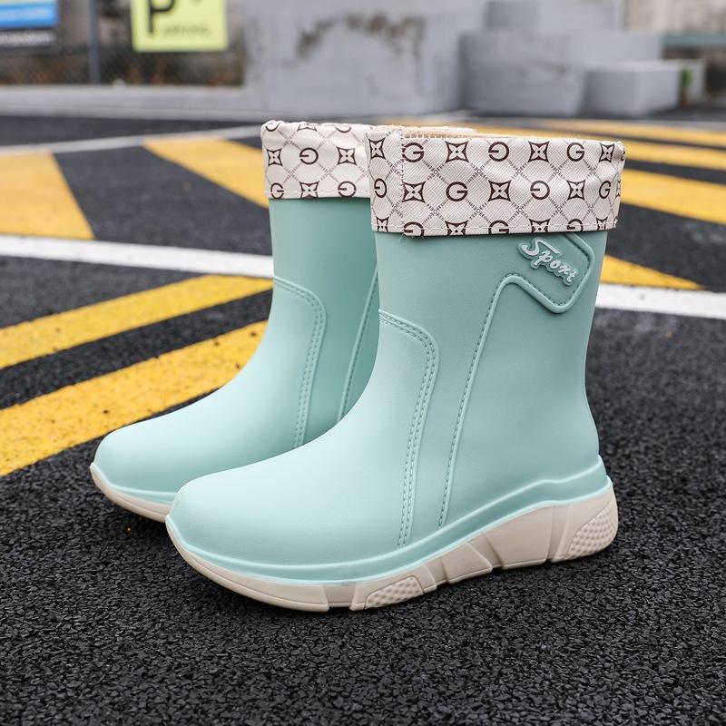 Новые дождевые туфли женские взрослые средней длины резиновые сапоги нескользящая водонепроницаемая обувь бархатный хлопок кухня короткие резиновые туфли мода