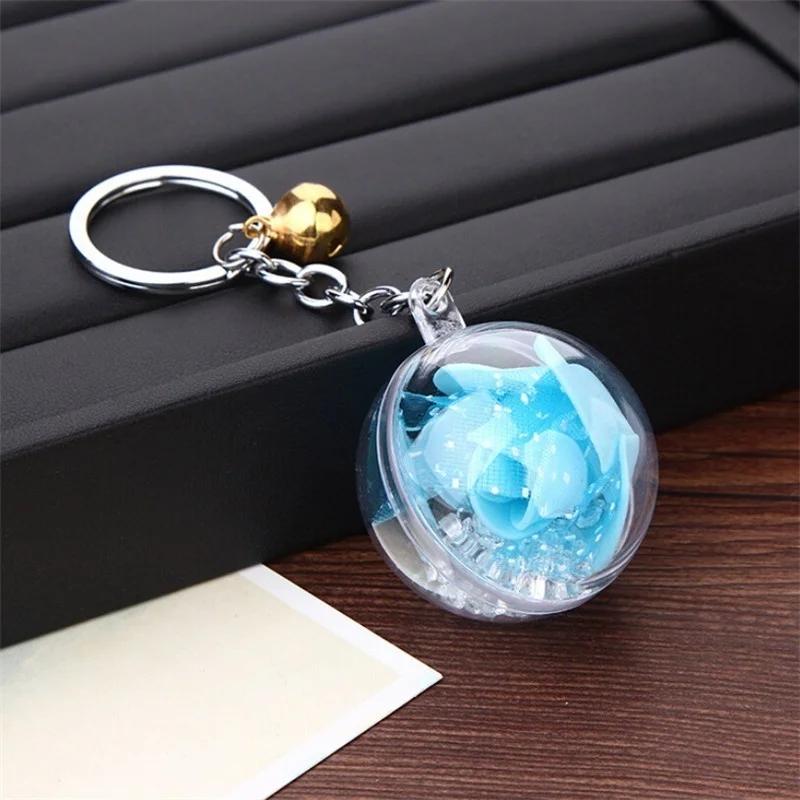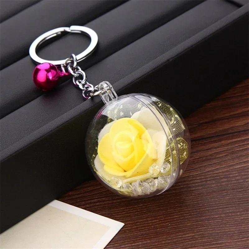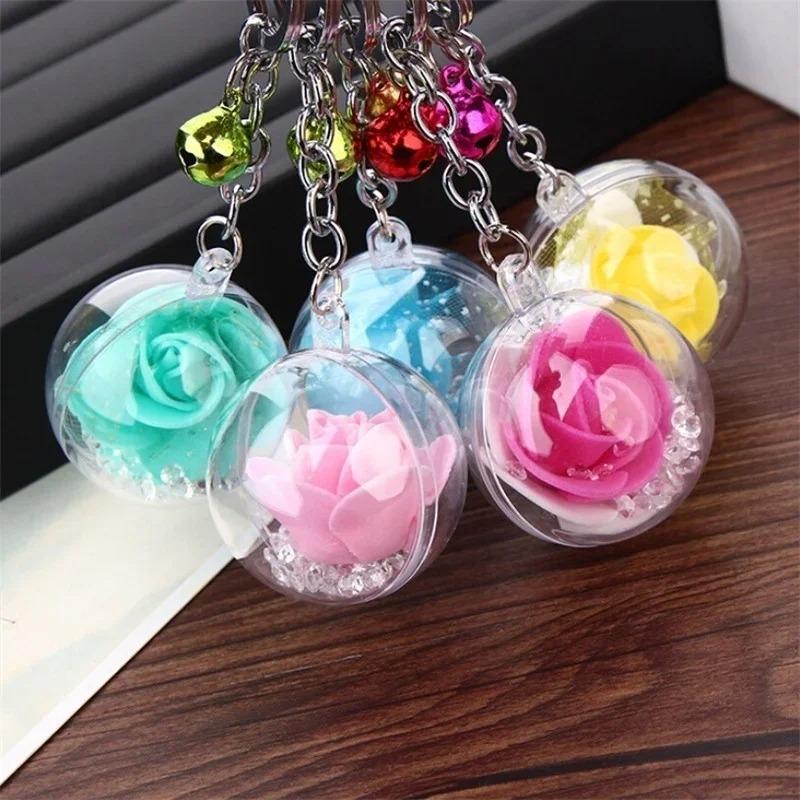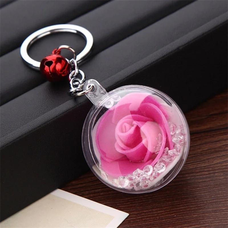 1 шт. брелок с цветком розы, брелки с цветком, брелок для ключей с колокольчиком, шелковый Шарм, брелок с хрустальным шаром