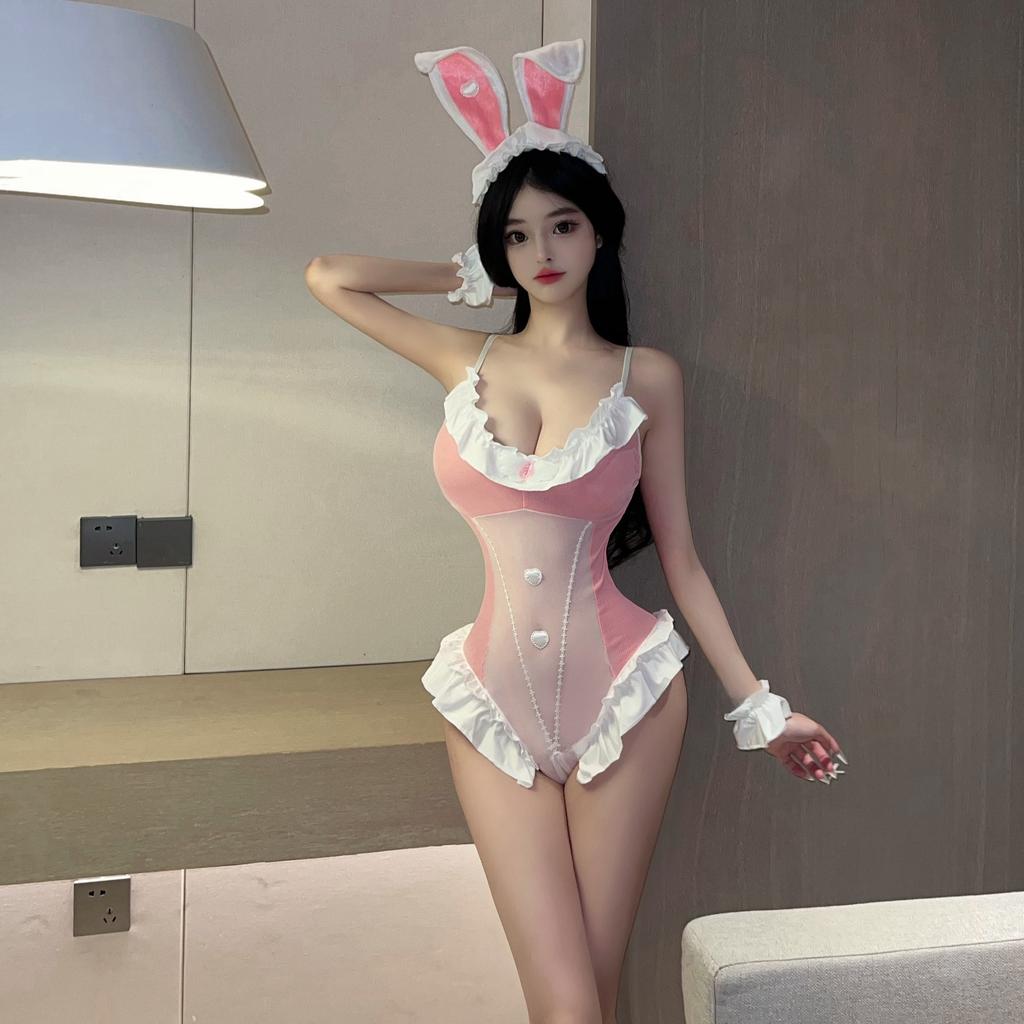 Сексуальное нижнее белье, сексуальный розовый милый костюм девочки-кролика, комбинезон-майка с мертвым баком, файл для свободного открытия