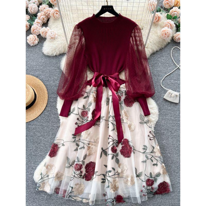 Доступная роскошь Социальный стиль Сетчатое платье-фея с утяжкой Вышивка
