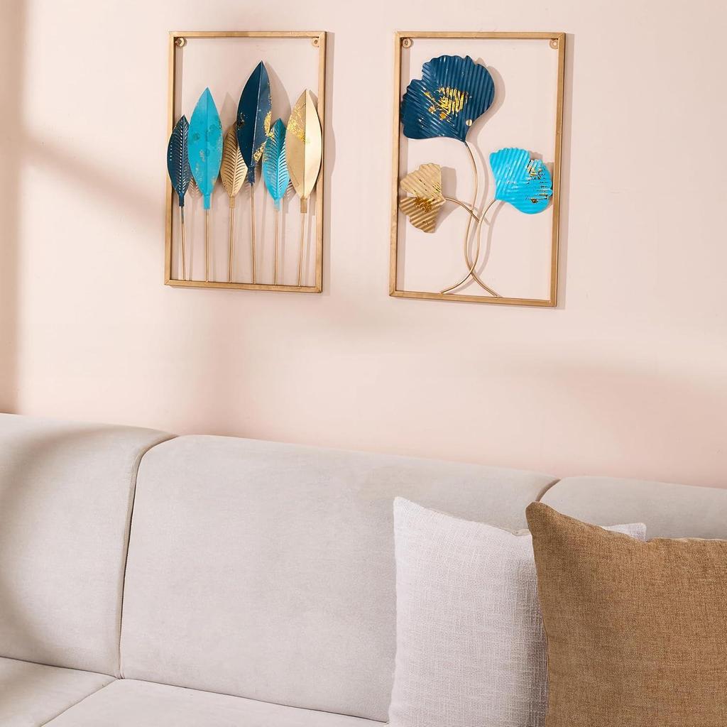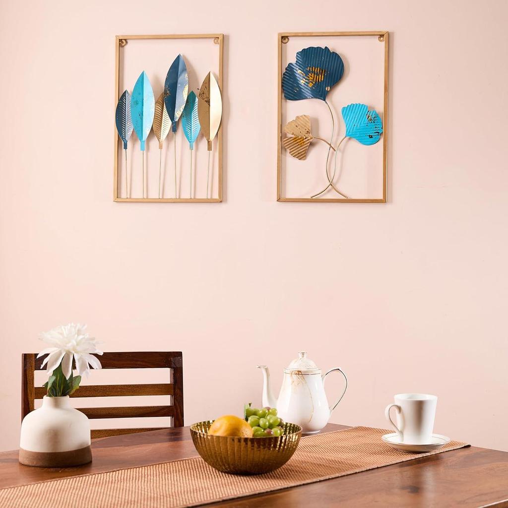 Металлический лист Настенный декор | Дизайн листа, вдохновленный природой | Простая установка (Набор из 2 штук | Золотой)
