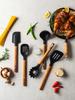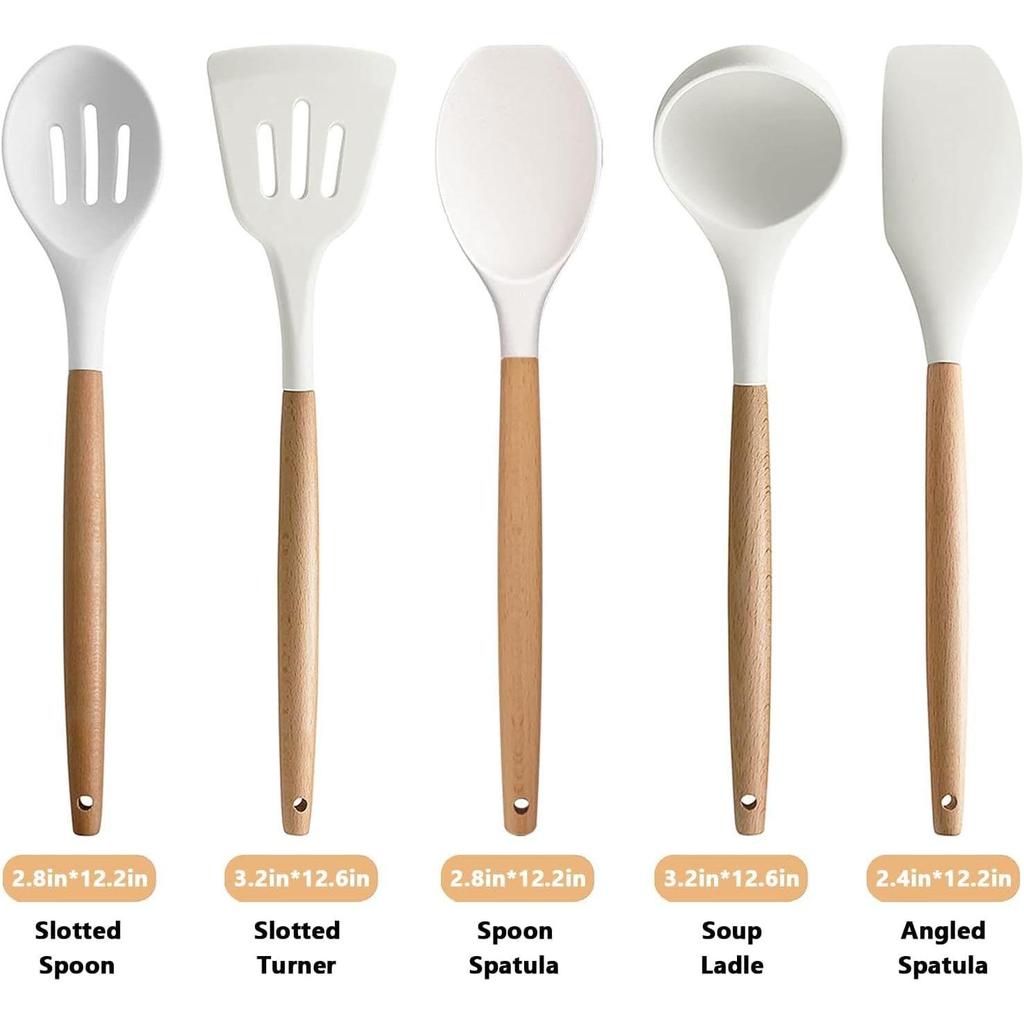Силиконовый кухонный набор, 5 предметов, антипригарная кухонная утварь с деревянными ручками, термостойкий, кремовый