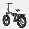 Equipped with 20×4.0" wide snow tires, the ENGINE X maintains excellent traction across various surfaces including pavement, gravel, and light trails. The front mechanical suspension absorbs road vibrations for increased comfort during longer rides.