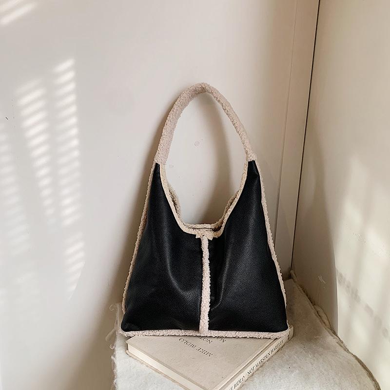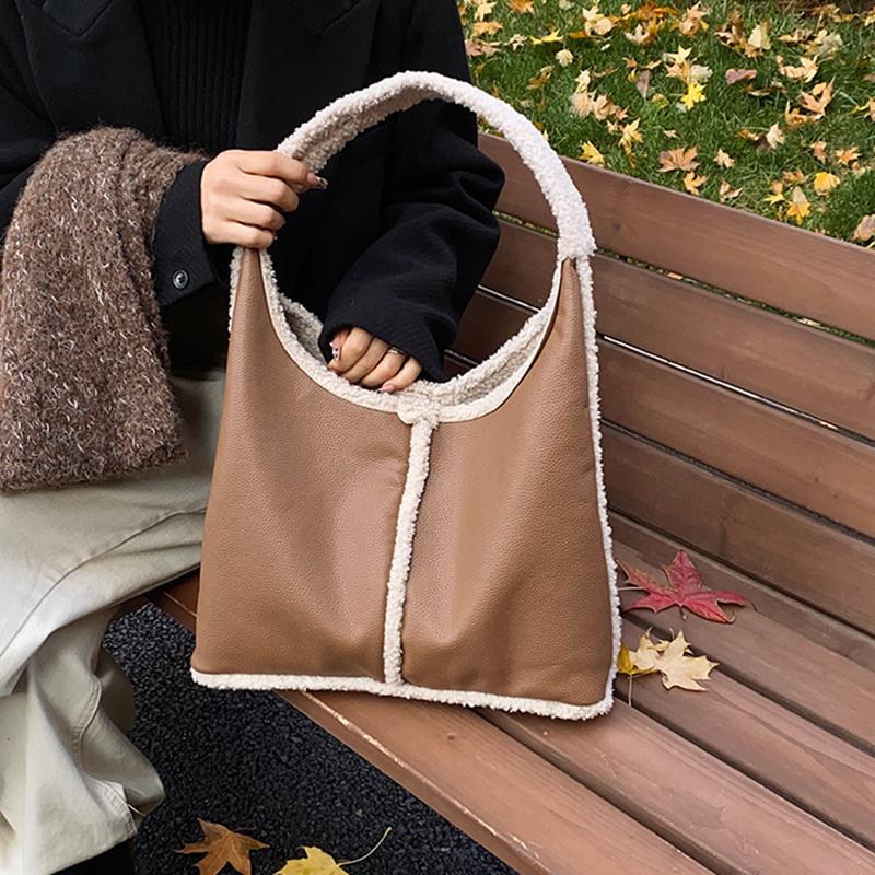 Трендовая дизайнерская сумка-ведро из овечьей шерсти через плечо Женские сумки и кошелек Зимняя женская кожаная сумка-тоут под мышкой