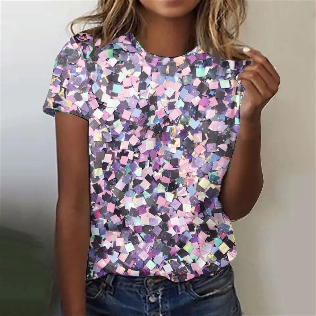 Женские футболки с коротким рукавом и круглым вырезом, напечатанные в 3D и раскрашенные.