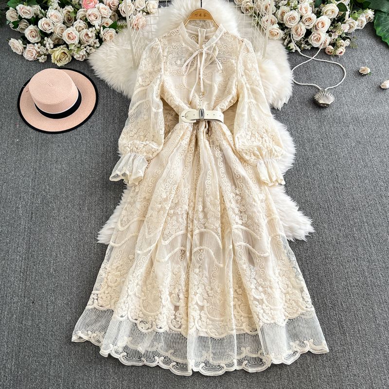 Платье в винтажном придворном стиле во французском стиле, машинная вышивка, деревянное ушко, облегающее, длинное кружевное платье, классное изысканное платье