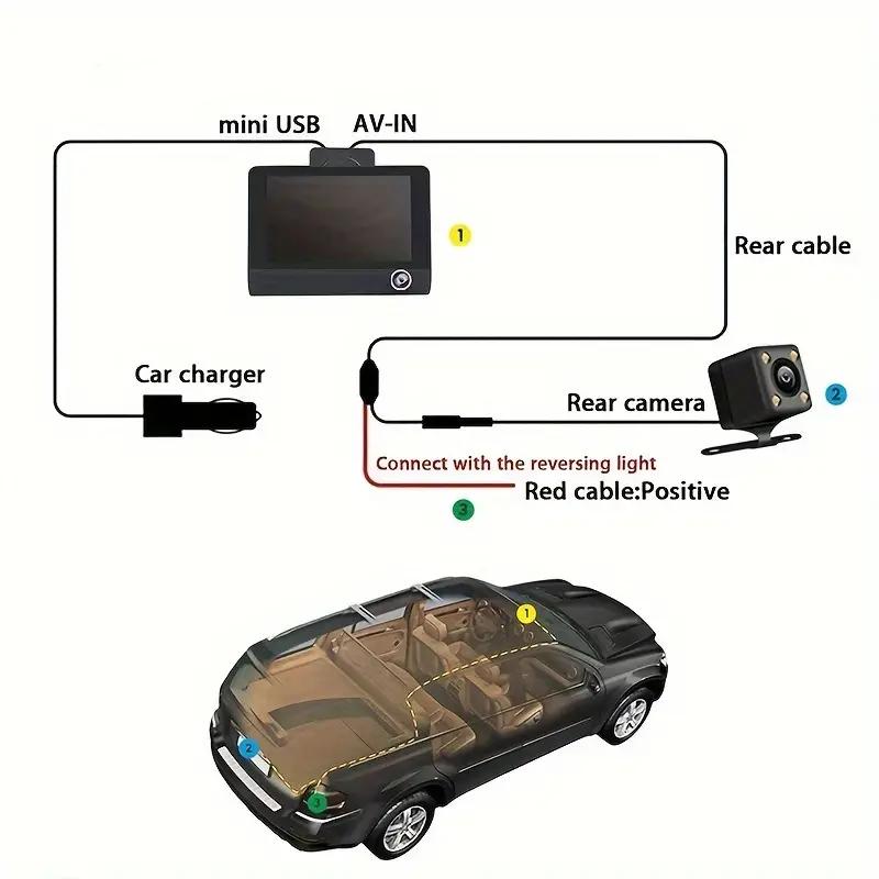 1. Новая дополнительная автомобильная камера с тремя объективами, фронтальная камера, внутренняя камера, камера заднего вида.