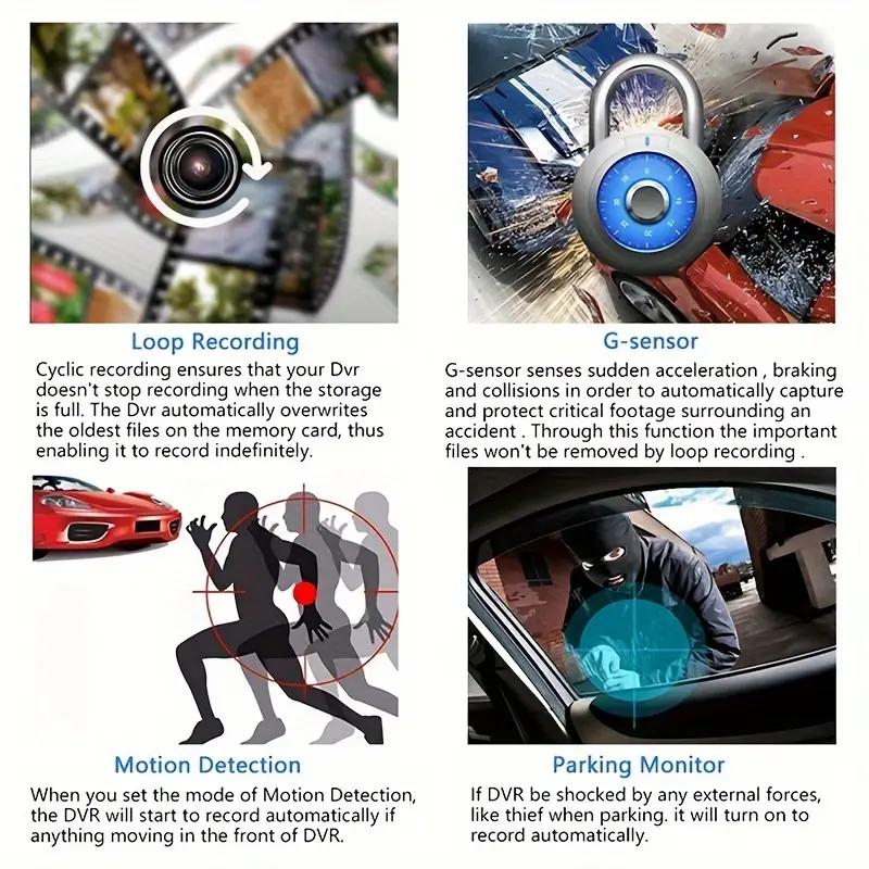 8. Поддержка функции определения силы тяжести, встроенный датчик силы тяжести, если произойдет серьезное столкновение транспортного средства, регистратор заблокирует запись.