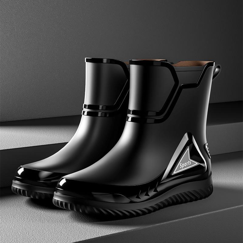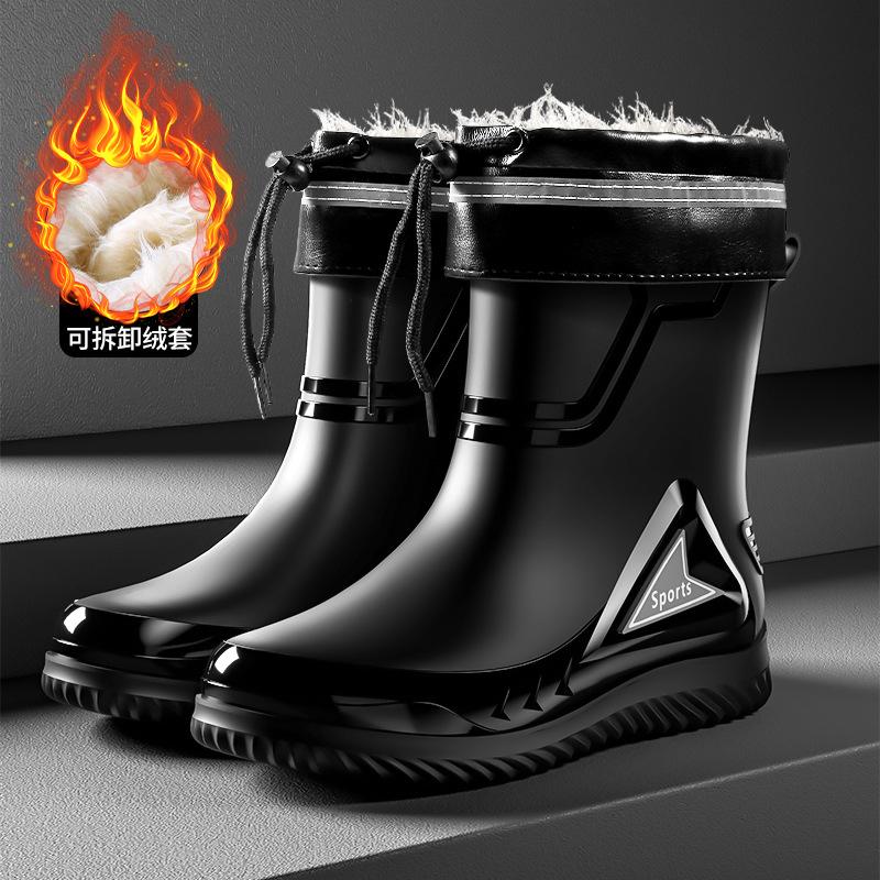 Мужские резиновые сапоги средней длины, нескользящие, водонепроницаемые, новая модная уличная водонепроницаемая обувь, теплые резиновые сапоги до щиколотки, мужская мода