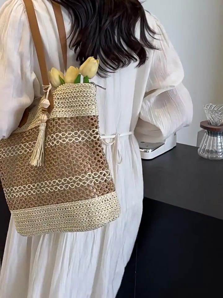 Женская стильная вязаная наплечная сумка, ажурная плетеная сумка, ручная тканая сумка-тоут, женские дорожные сумки для поездок на работу AVE