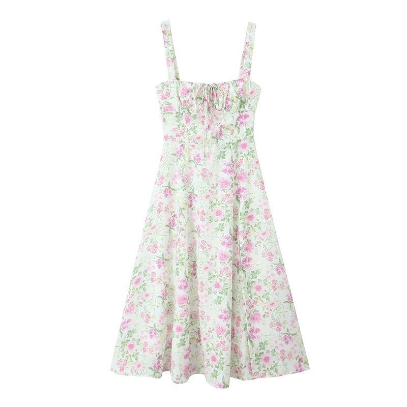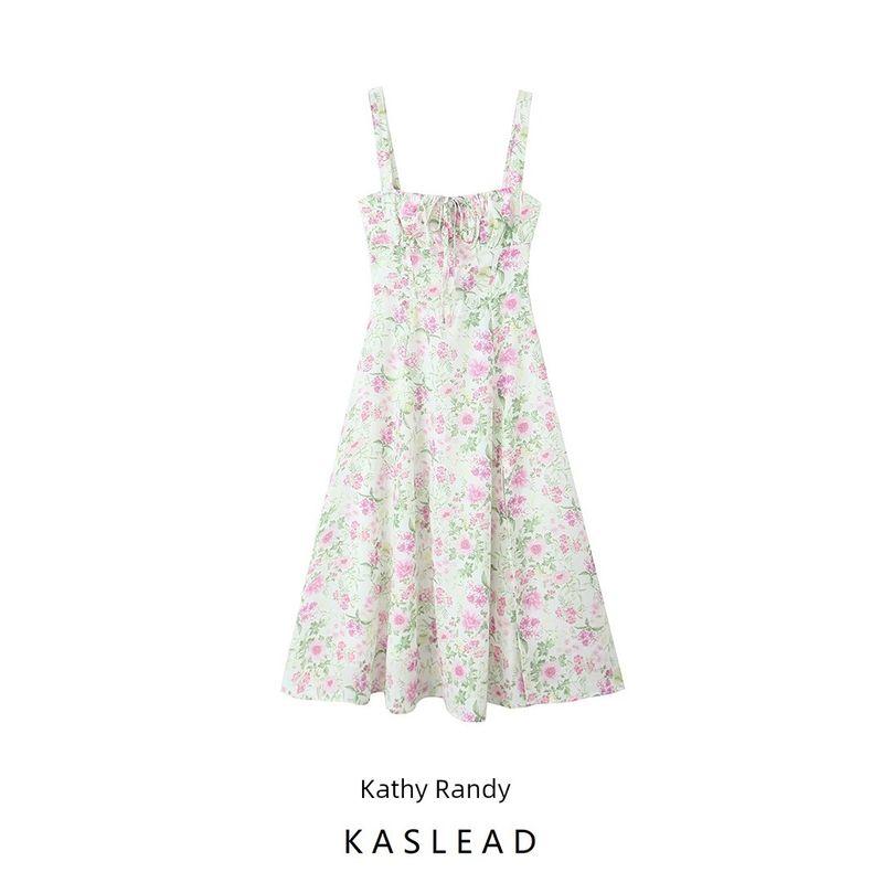 Kaslead New Arrival Women's Clothing Fashion Style Fashion French Drawstring Strap Split Hanging Closing Belt Long Dress
