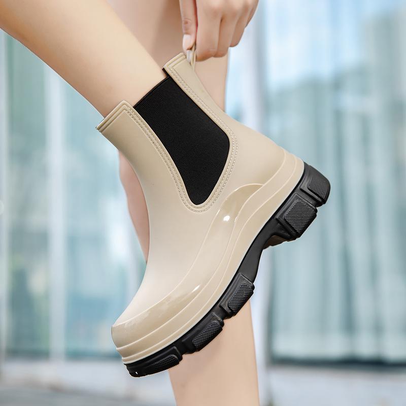Женские модные водонепроницаемые ботинки средней длины, нескользящие, для ношения на улице, средней длины, водонепроницаемые, взрослые короткие резиновые сапоги