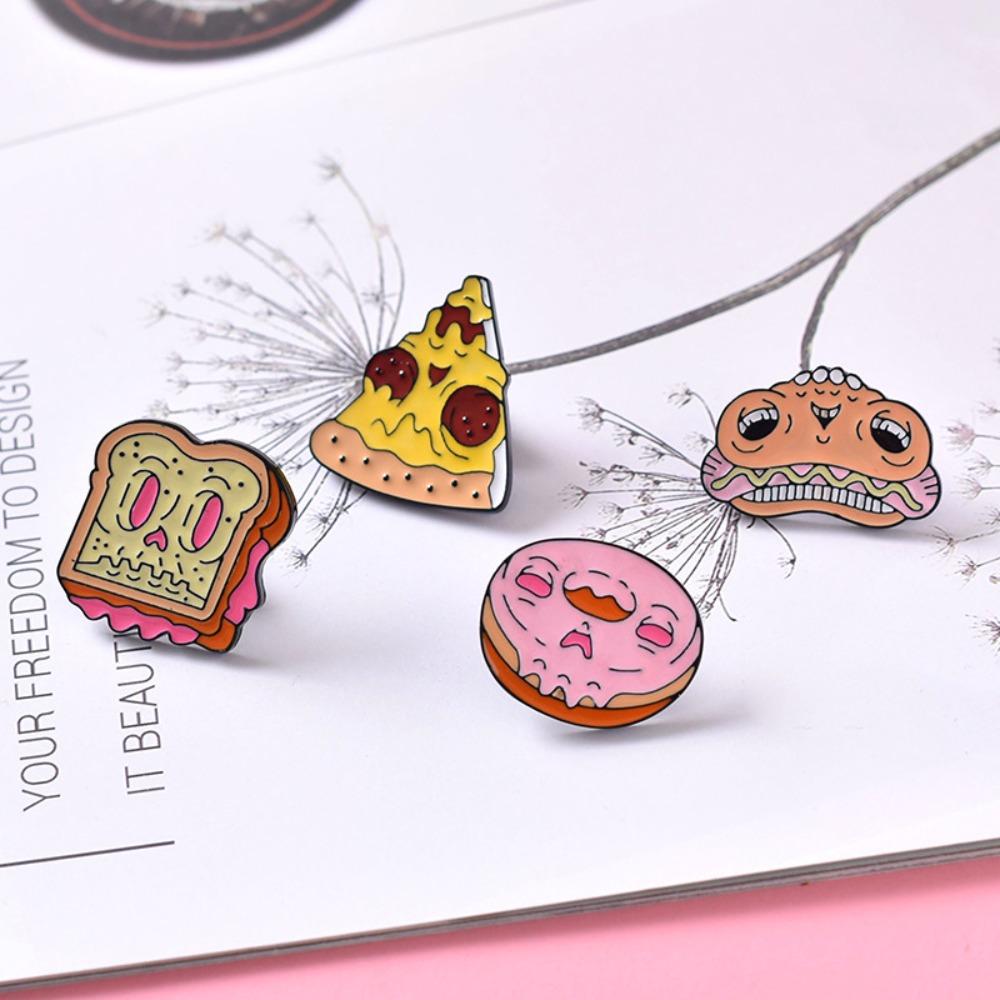 Zinc Zinc Alloy Cartoon Food Brooch Cute Doughnut Brooch Fashion Cartoon Metal Brooch Ornament Badge