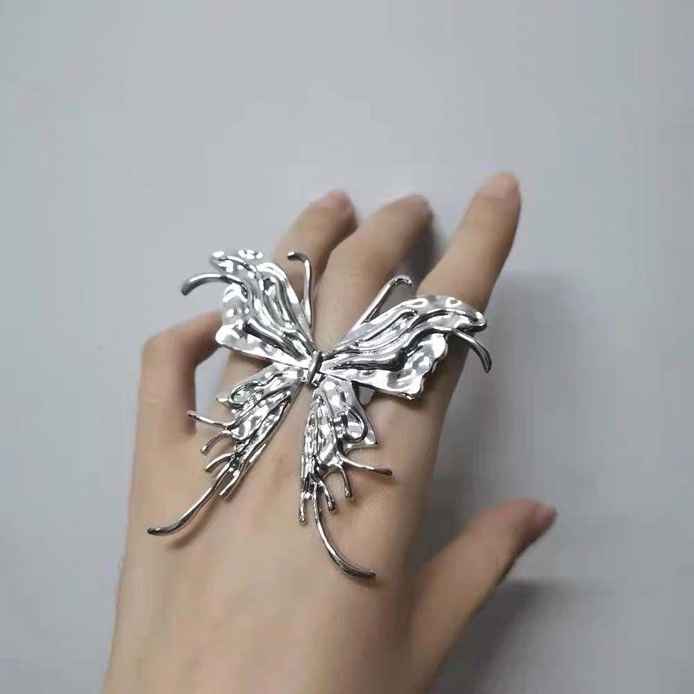 Девушки Преувеличение Личность Металлические Кольца Большая Бабочка Корейские Кольца на Палец Женские Кольца с Открытием