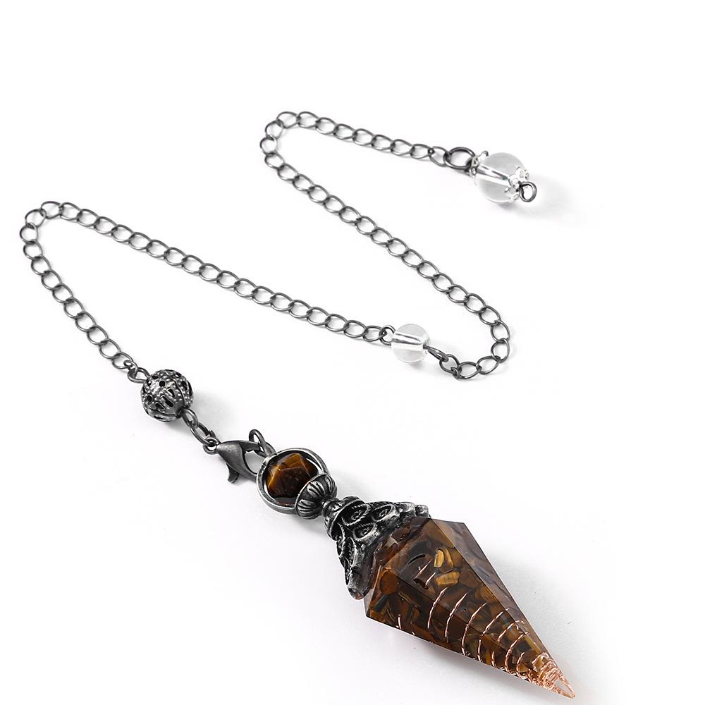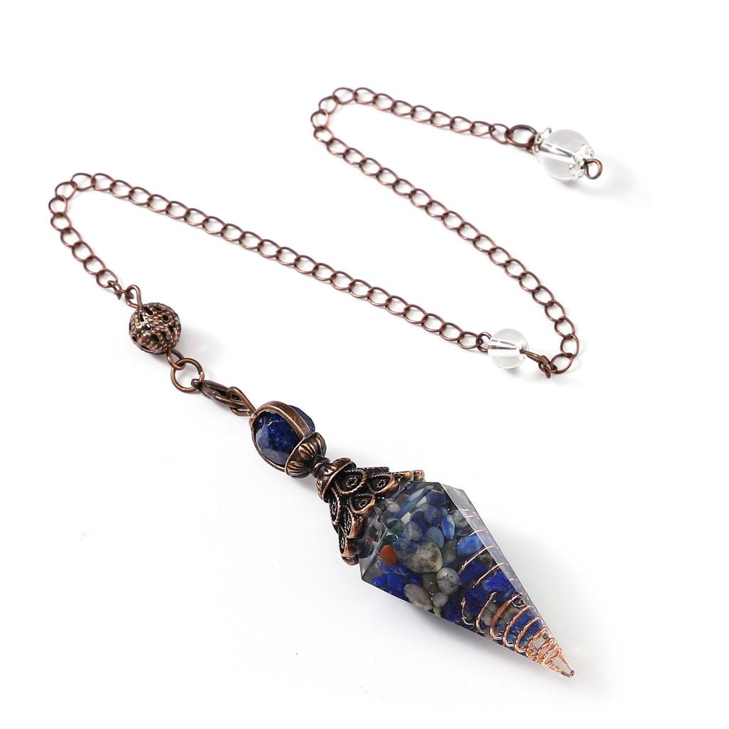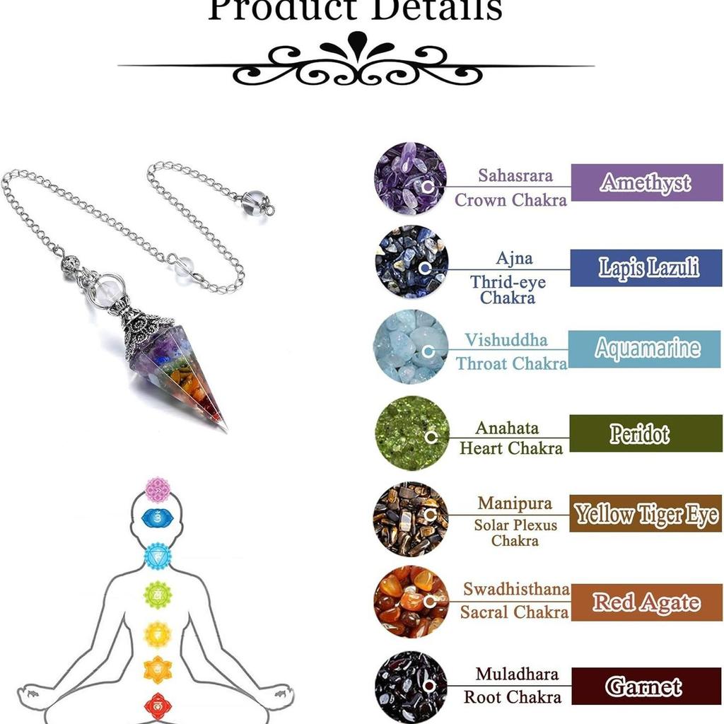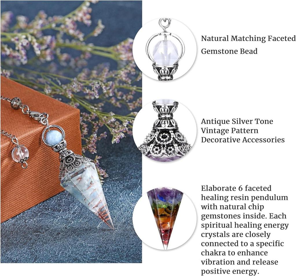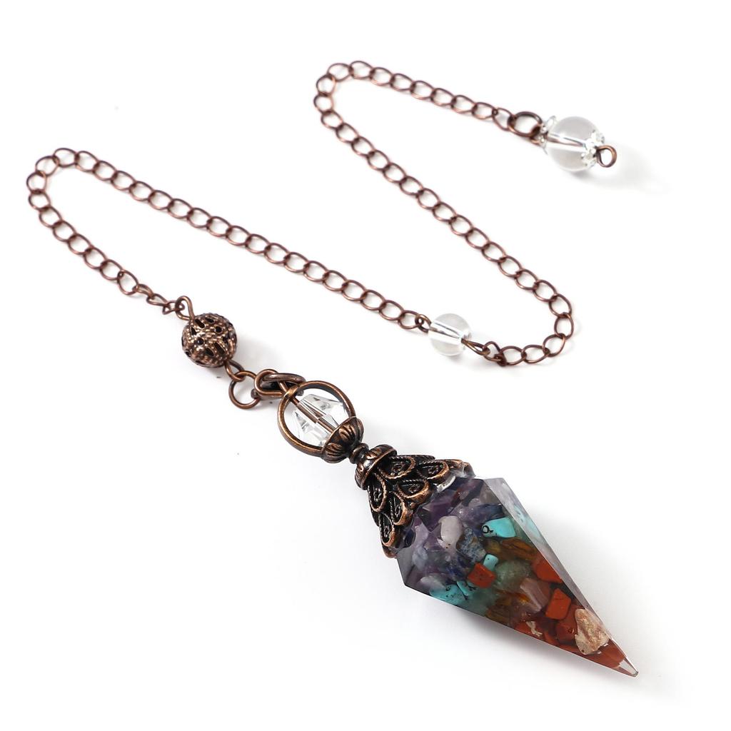 Античное серебро Маятник с кристаллами семи чакр из смолы и подвеской из полудрагоценных камней