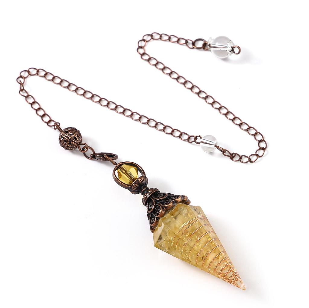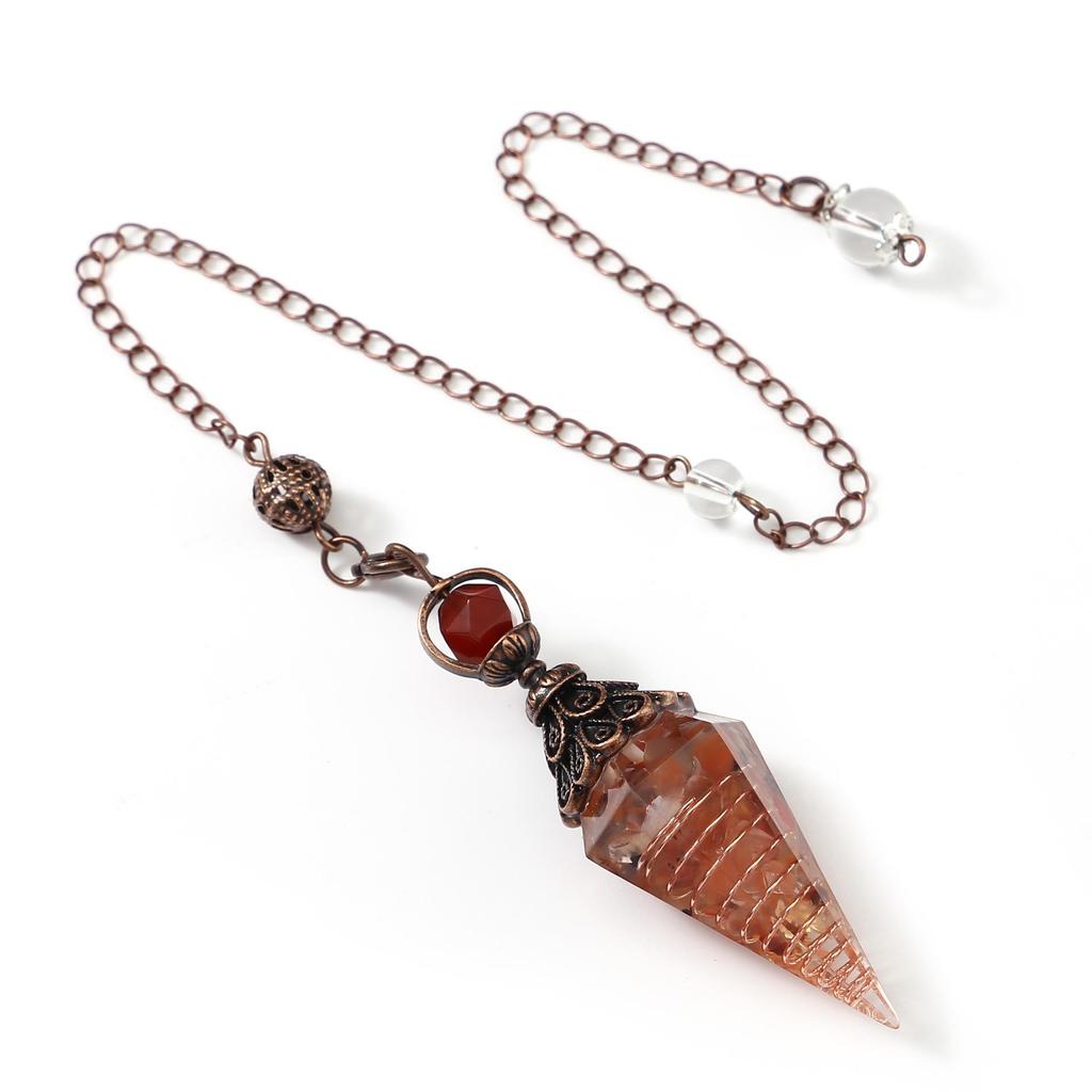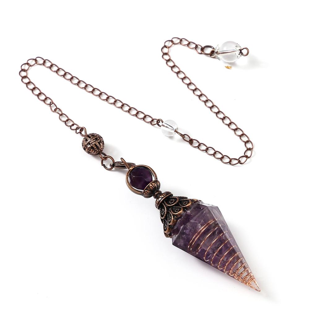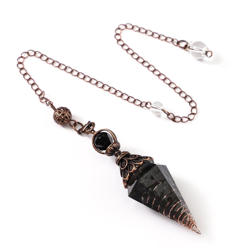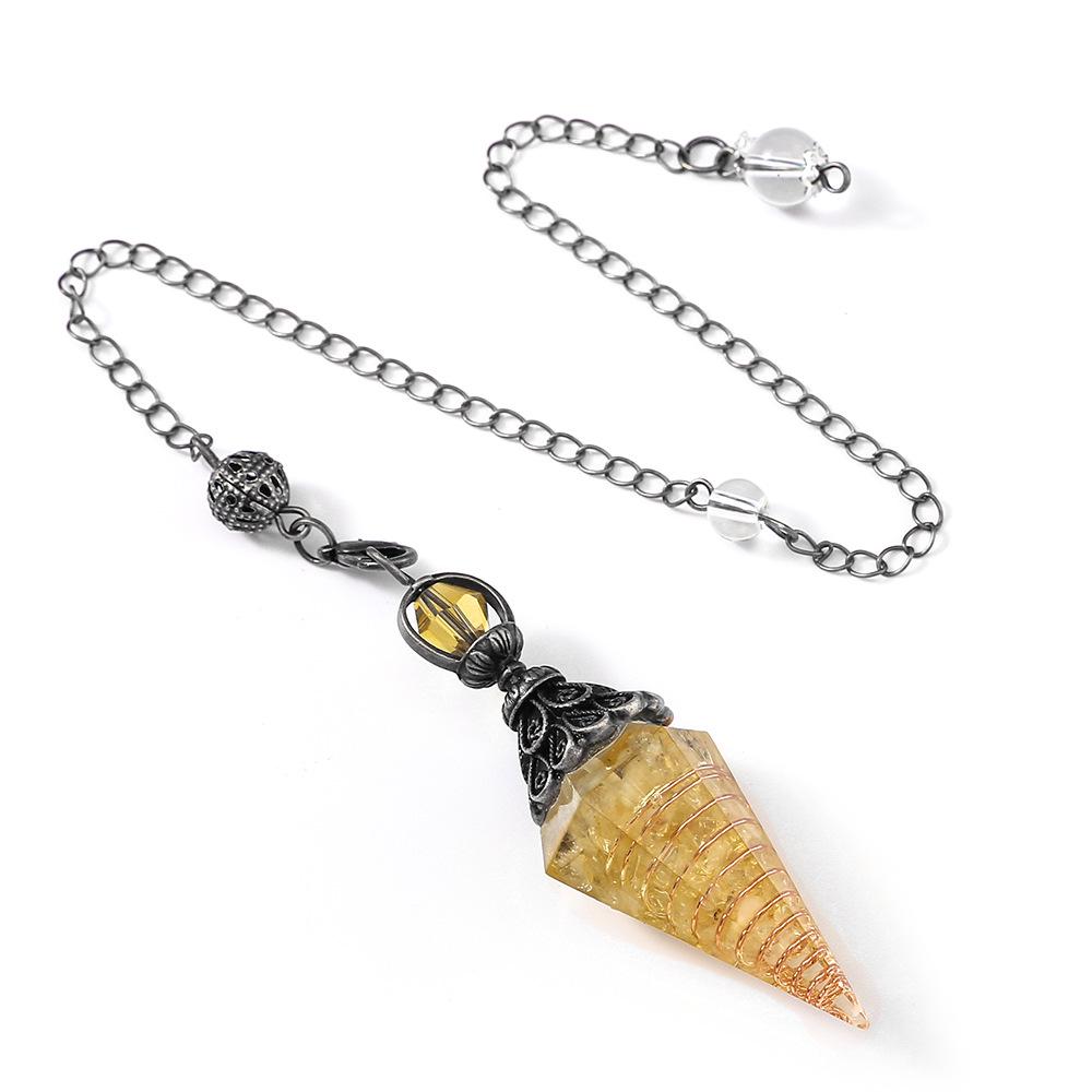Античное серебро Маятник с кристаллами семи чакр из смолы и подвеской из полудрагоценных камней