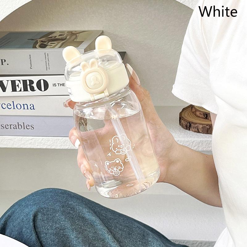 Бутылка для воды Kawaii с кроликом 500 мл, портативная милая чашка для питья в форме ушек с соломинкой и крышкой, летняя посуда для питья для кемпинга на открытом воздухе