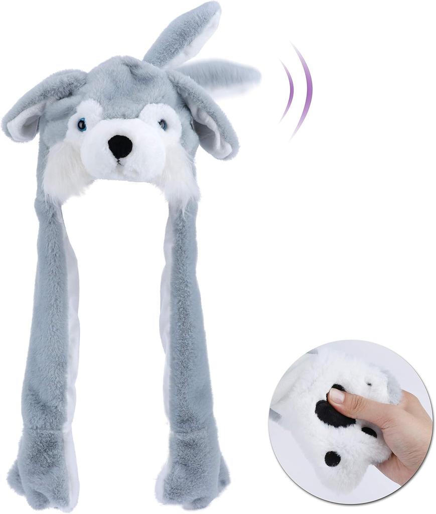 Шапка в виде животного с двигающимися ушами, прыгающая, выскакивающая, бьющаяся шапка, плюшевая, праздничная, для косплея, нарядная, забавный подарок для детей