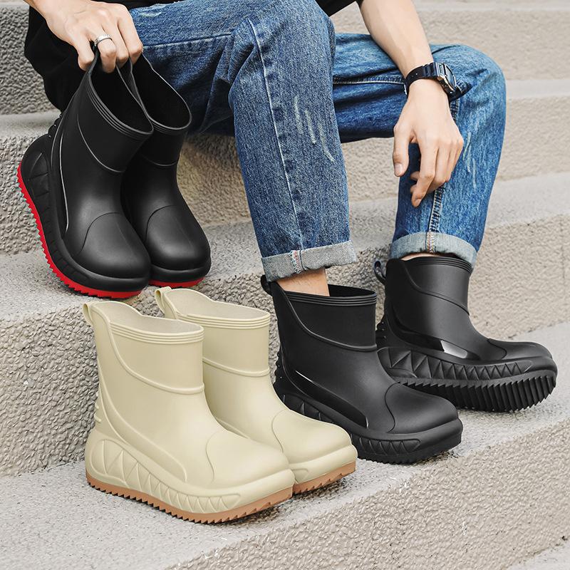 Модная дождевая обувь мужская короткая труба верхняя одежда мягкая подошва водонепроницаемая обувь для рыбалки на открытом воздухе нескользящие кухонные резиновые сапоги обувь для автомойки