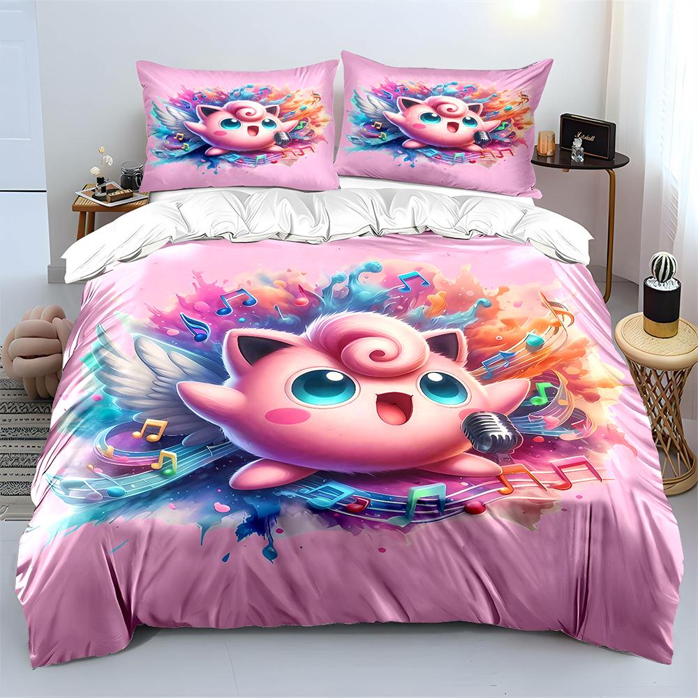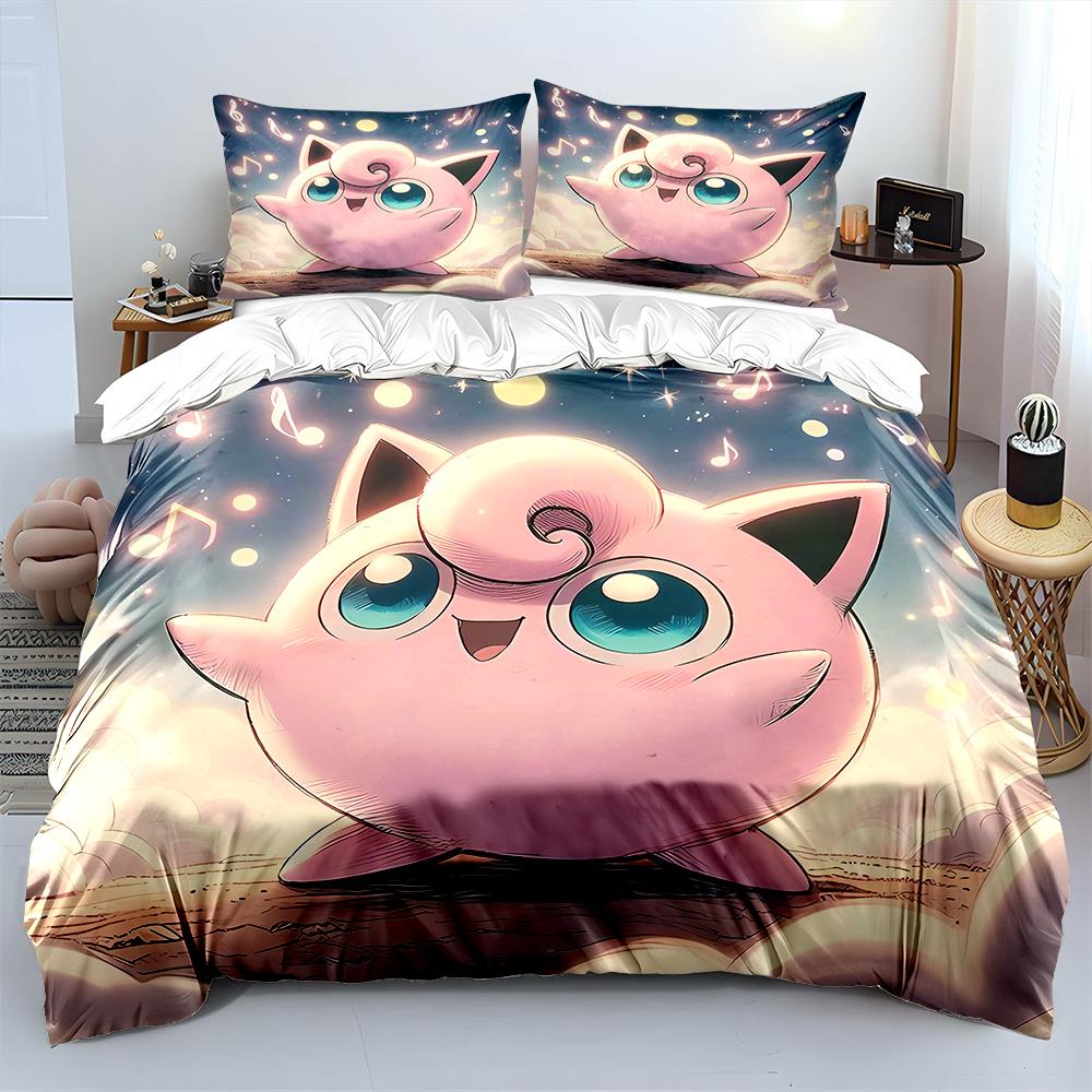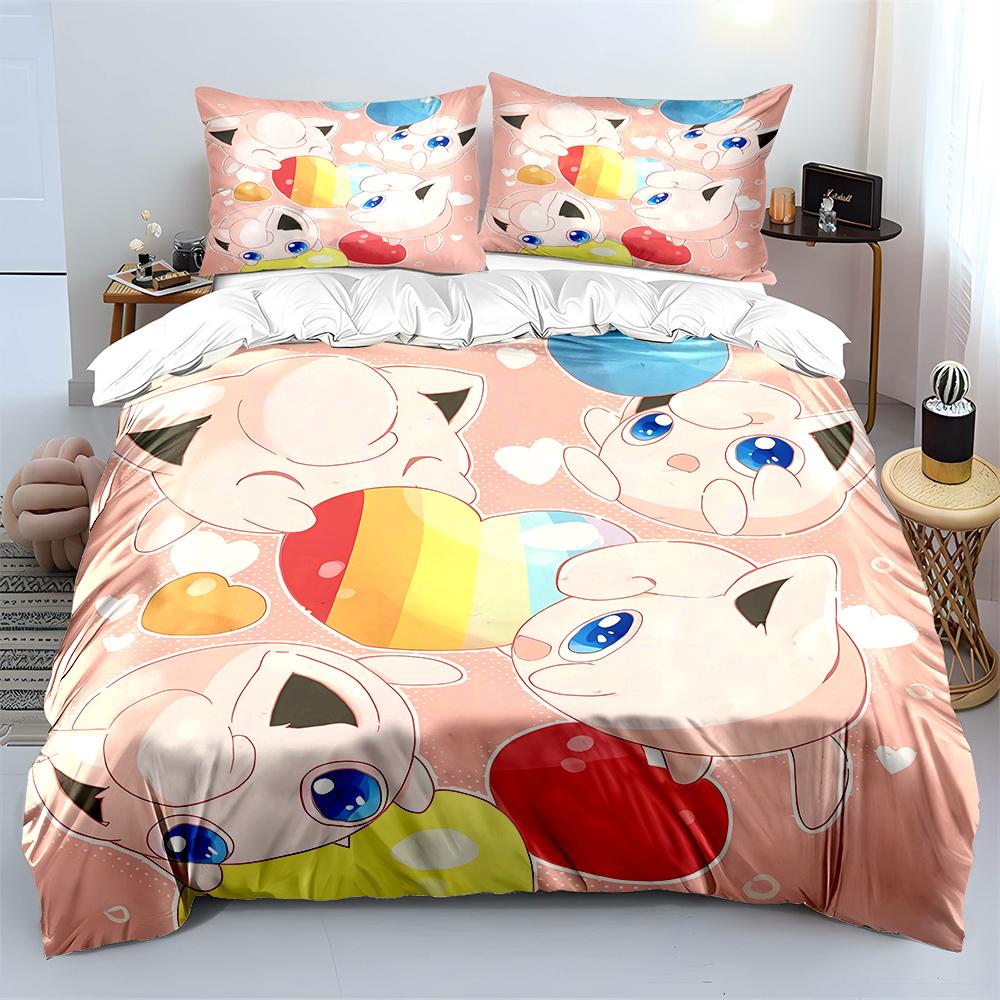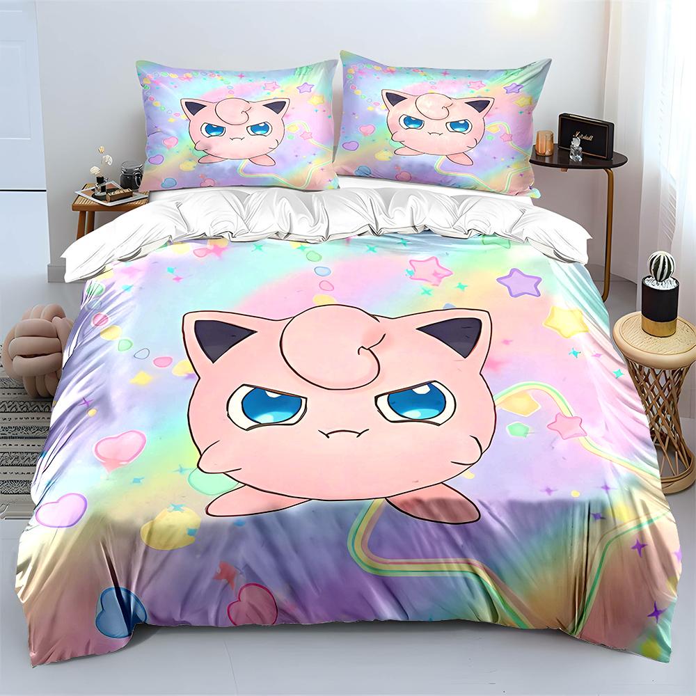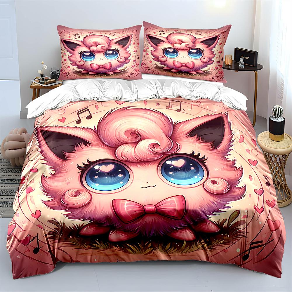 Покемон Джиглипафф 3 предмета Постельный набор Наволочка Взрослое покрывало для кровати Спальный комплект Пододеяльник Комплект Пододеяльник Домашнее украшение Покрывало
