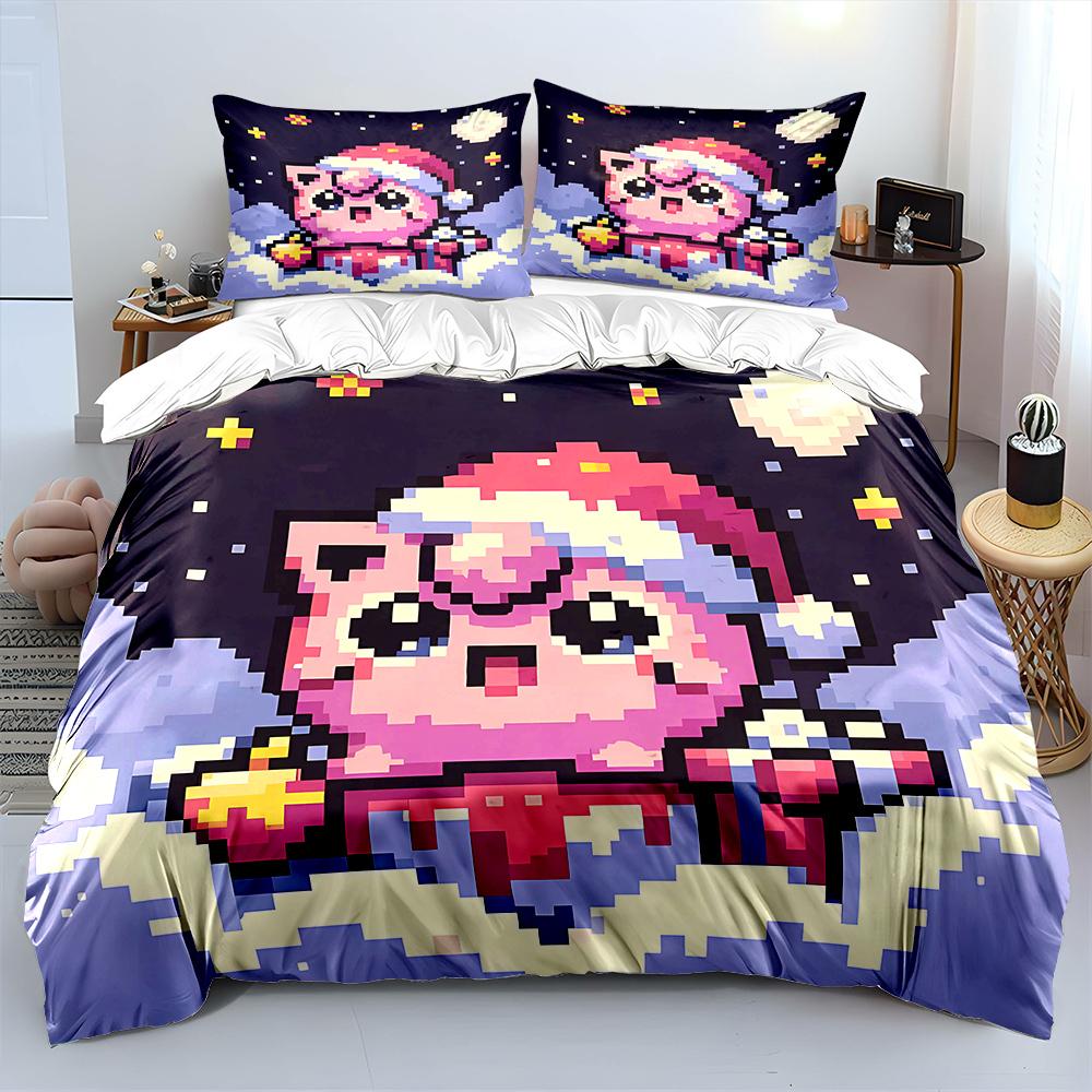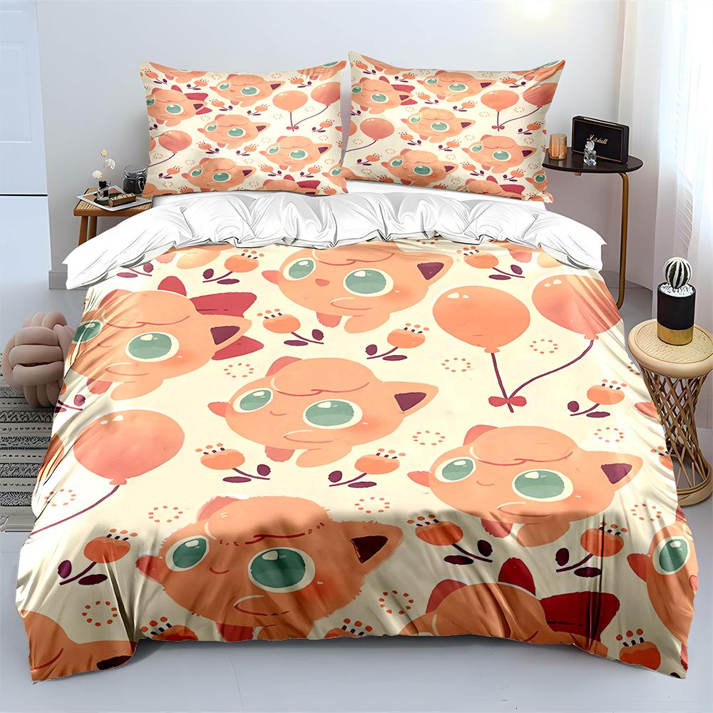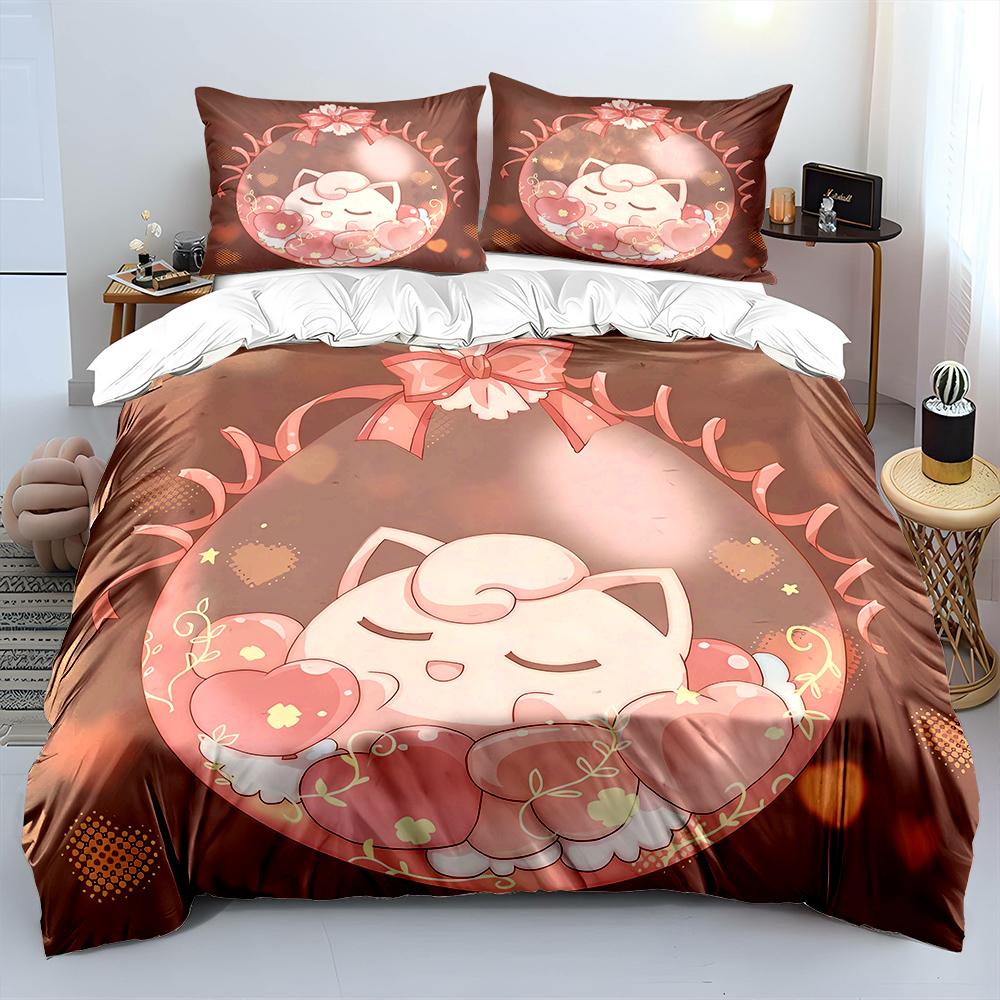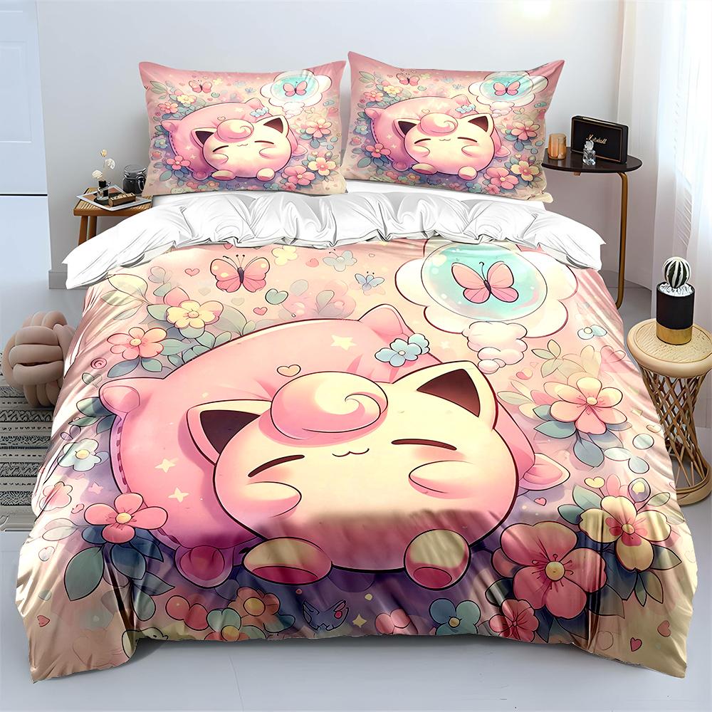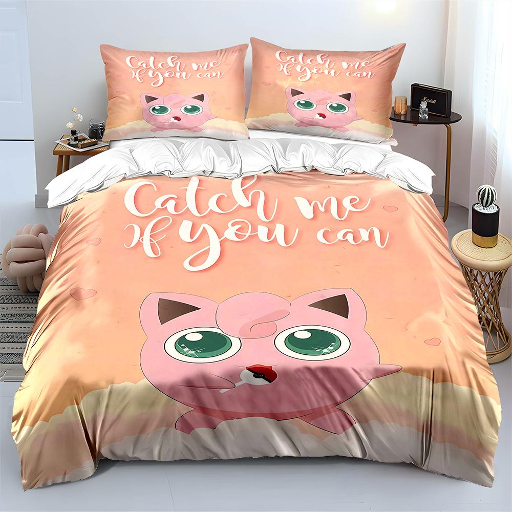 Покемон Джиглипафф 3 предмета Постельный набор Наволочка Взрослое покрывало для кровати Спальный комплект Пододеяльник Комплект Пододеяльник Домашнее украшение Покрывало