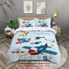 Мультяшный принт с рисунком самолета из 3 частей (1 пододеяльник+2 наволочки, без наполнителя) мягкий и удобный постельный комплект