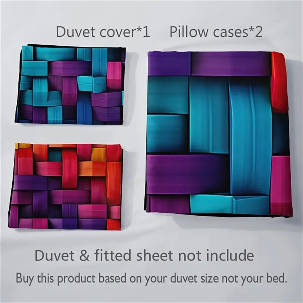 Комплект пододеяльника геометрического дизайна ярких цветов, 3 предмета - Мягкое, дышащее постельное белье с HD-печатью, 1 пододеяльник и 2 наволочки