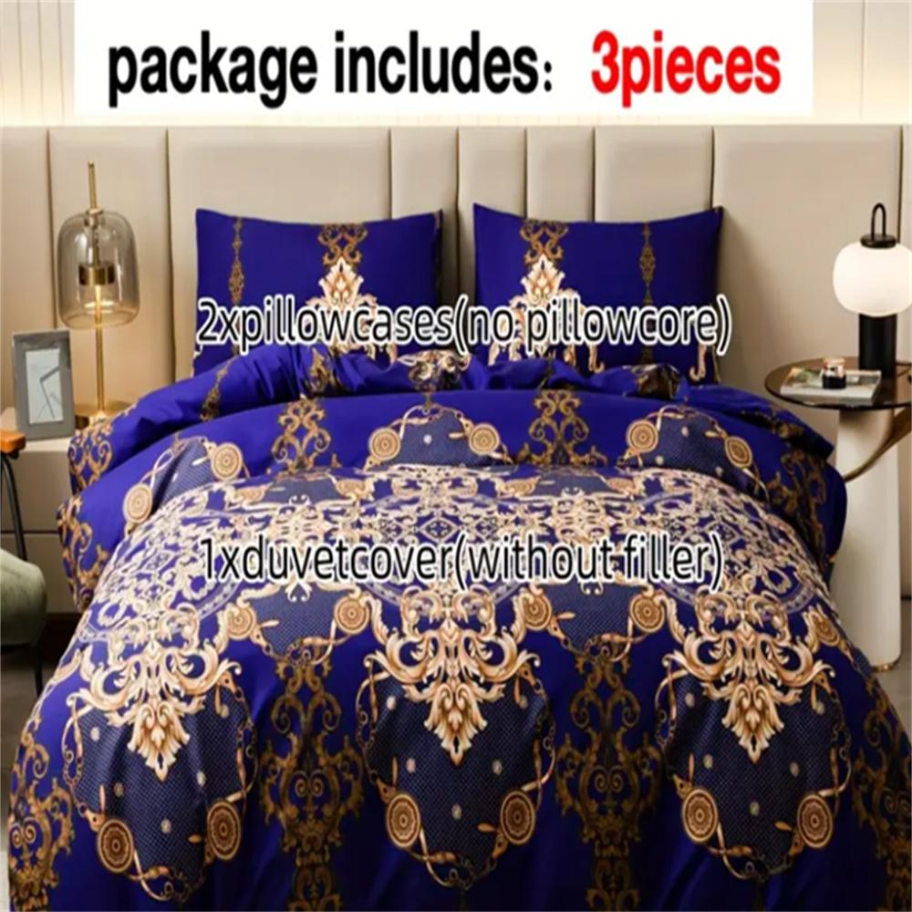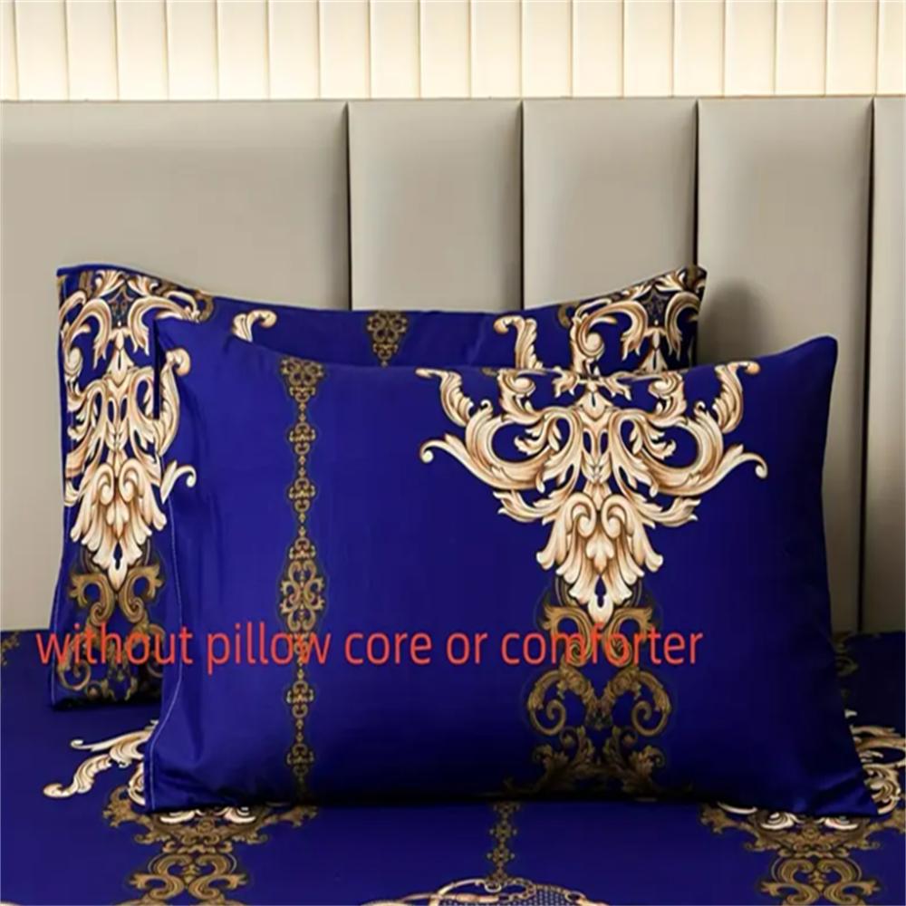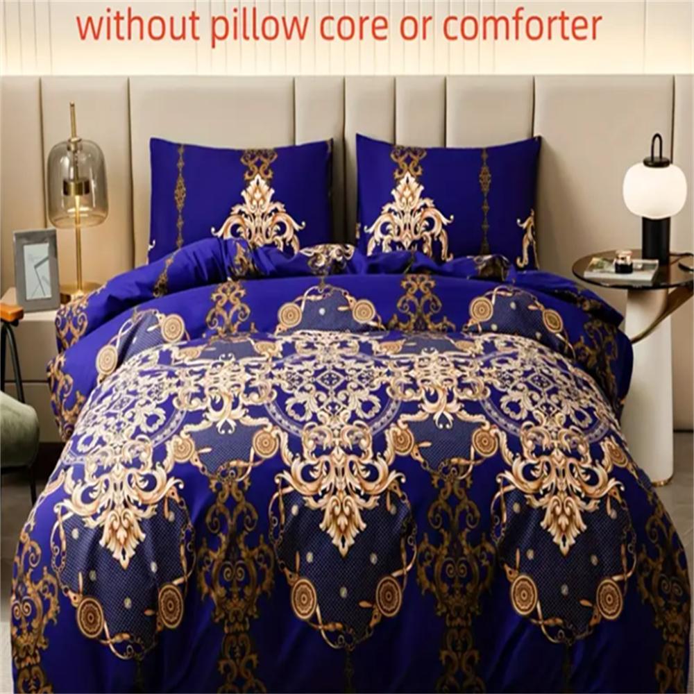 Роскошный темно-синий современный стиль цифровая печать хлопковая ткань постельный комплект пододеяльник наволочки домашний текстиль